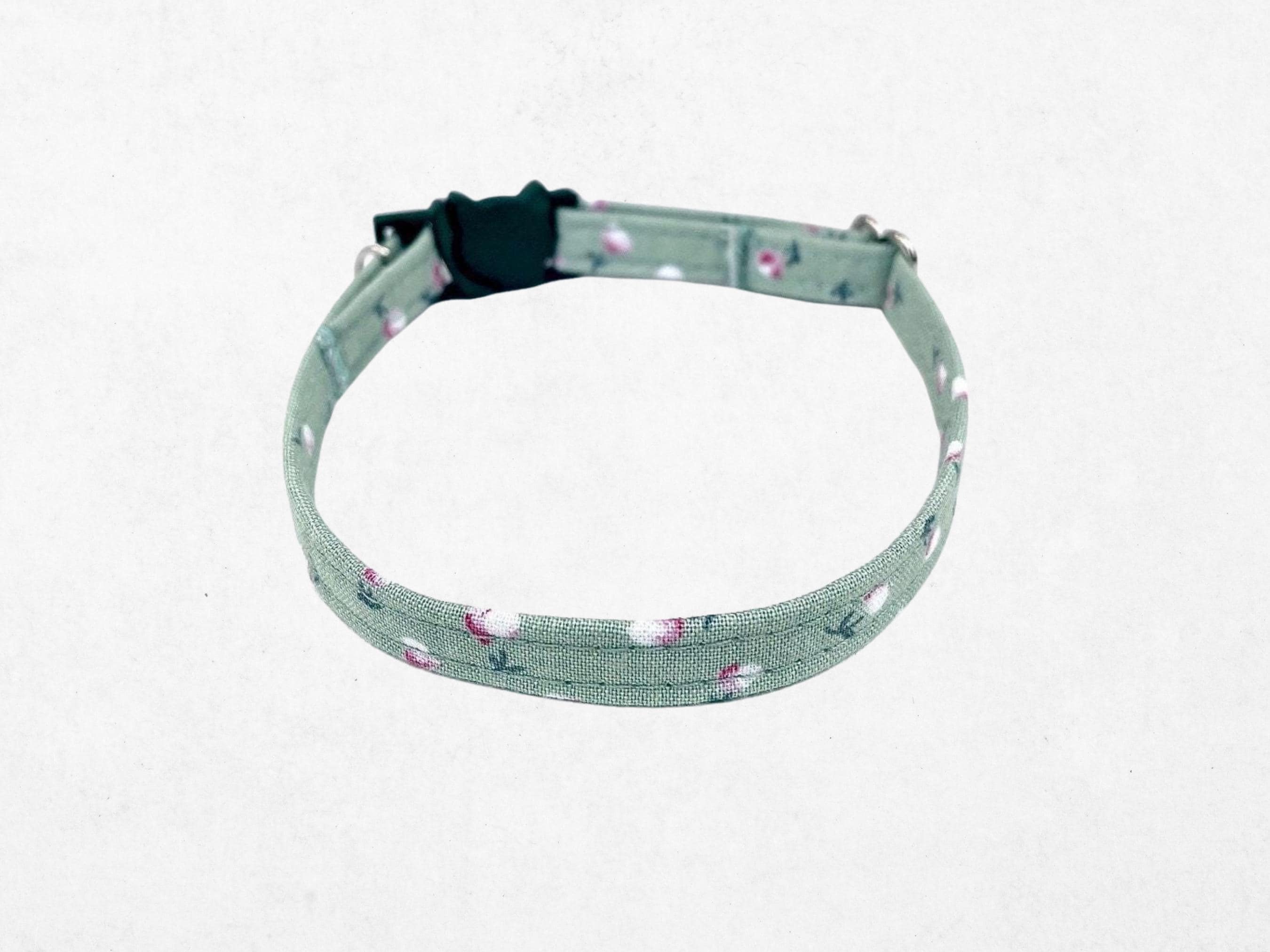 Embrace the perfect harmony of safety and style with this floral green collar, designed especially for your beloved feline or small dog. Crafted with a secure breakaway cat collar buckle and a sturdy D ring pet collar attachment, it ensures both comfort and peace of mind during your pet’s adventures. Handmade with love, this adjustable collar blends charming design with practical features to delight any pet lover.
