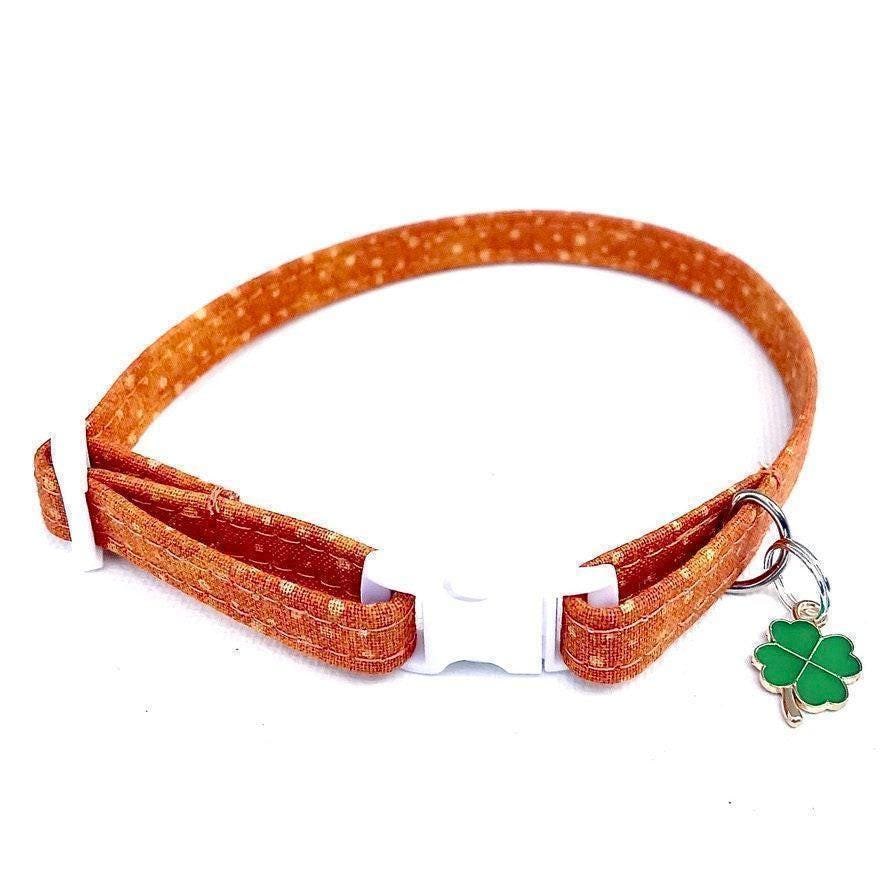 Celebrate your pet's unique charm with this adorable kitten collar, designed for both style and safety. Inspired by the festive spirit of Saint Patrick's Day, this adjustable collar fits small dogs and cats comfortably while featuring a secure kitty safety collar breakaway buckle. Handmade with care, it brings together comfort, durability, and a touch of holiday cheer.