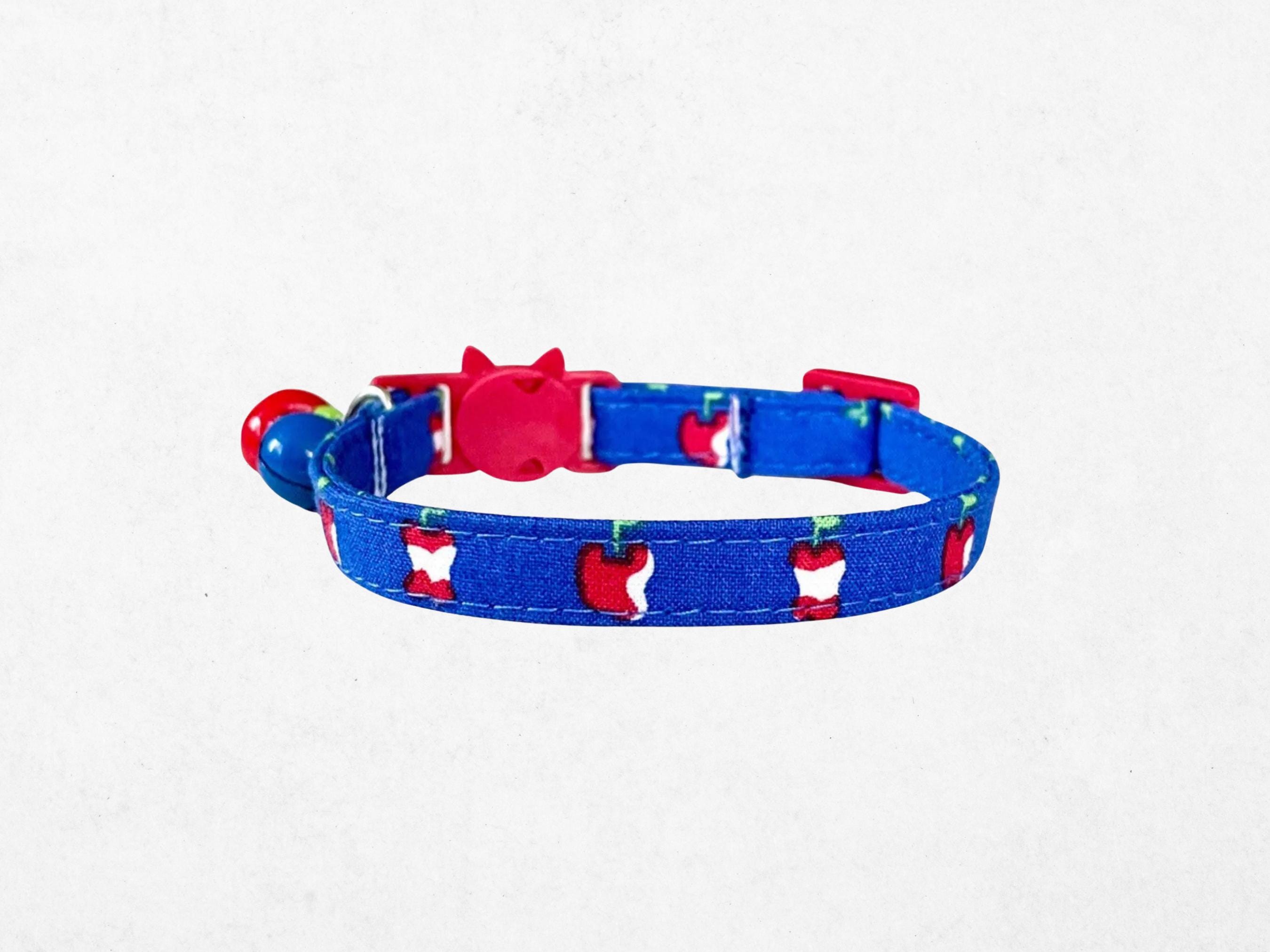 Discover the perfect blend of safety and style with this handmade apple pet collar, designed specifically for cats and small dogs. Featuring a secure breakaway buckle and a sturdy D-ring attachment, it ensures comfort and practicality for your furry friend. Whether you're looking for a charming gift for a cat lover or tiny dog accessories that stand out, this adjustable comfort fit collar offers both function and flair.
