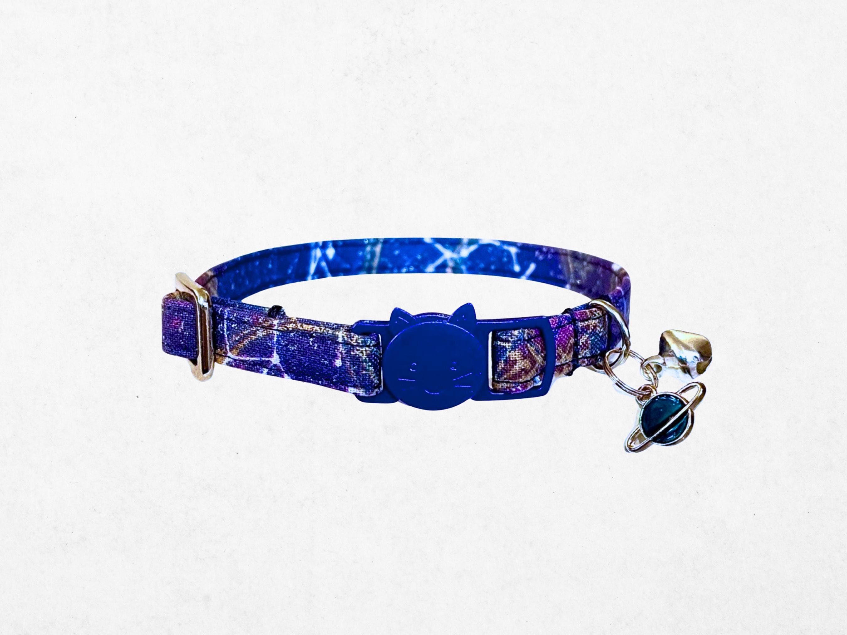 Transform your pet’s everyday style with the enchanting glitter cosmic pet collar, inspired by the mesmerizing beauty of a starry night sky. This galaxy cat collar combines celestial charm with practical safety features, including a secure breakaway clasp designed to protect your furry friend. Perfectly adjustable for small dogs and kittens, this cosmic cat collar offers a comfortable fit while showcasing a shimmering celestial design.