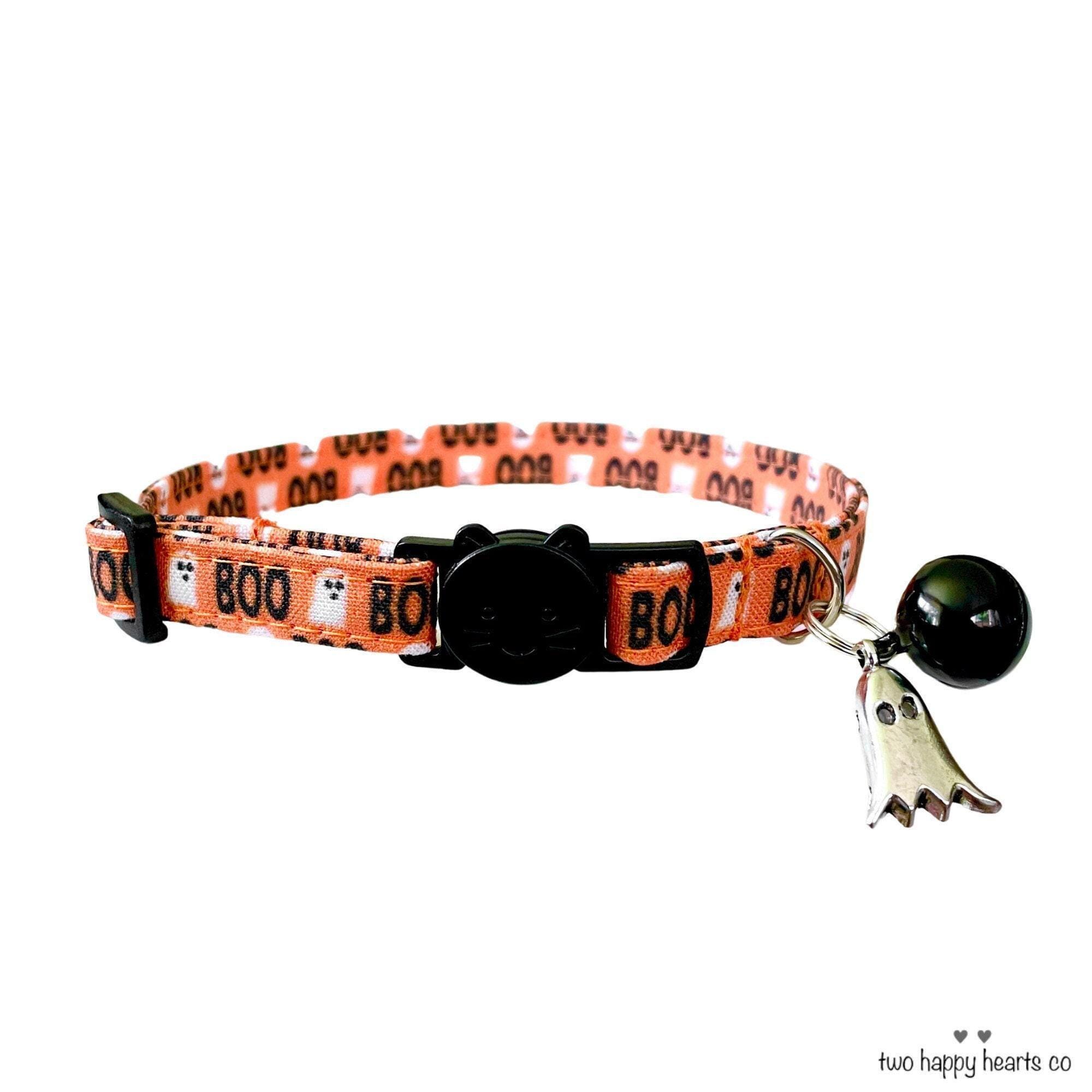 Celebrate your pet’s playful spirit this season with a charming Halloween cat collar that features a whimsical ghost print style. Designed especially for small pets, this lightweight fabric accessory combines festive flair with comfort and safety, making it an ideal choice for your furry friend. Whether you’re searching for a spooky cat collar or a seasonal pet gift, this handmade piece ensures your pet stays stylish and secure.
