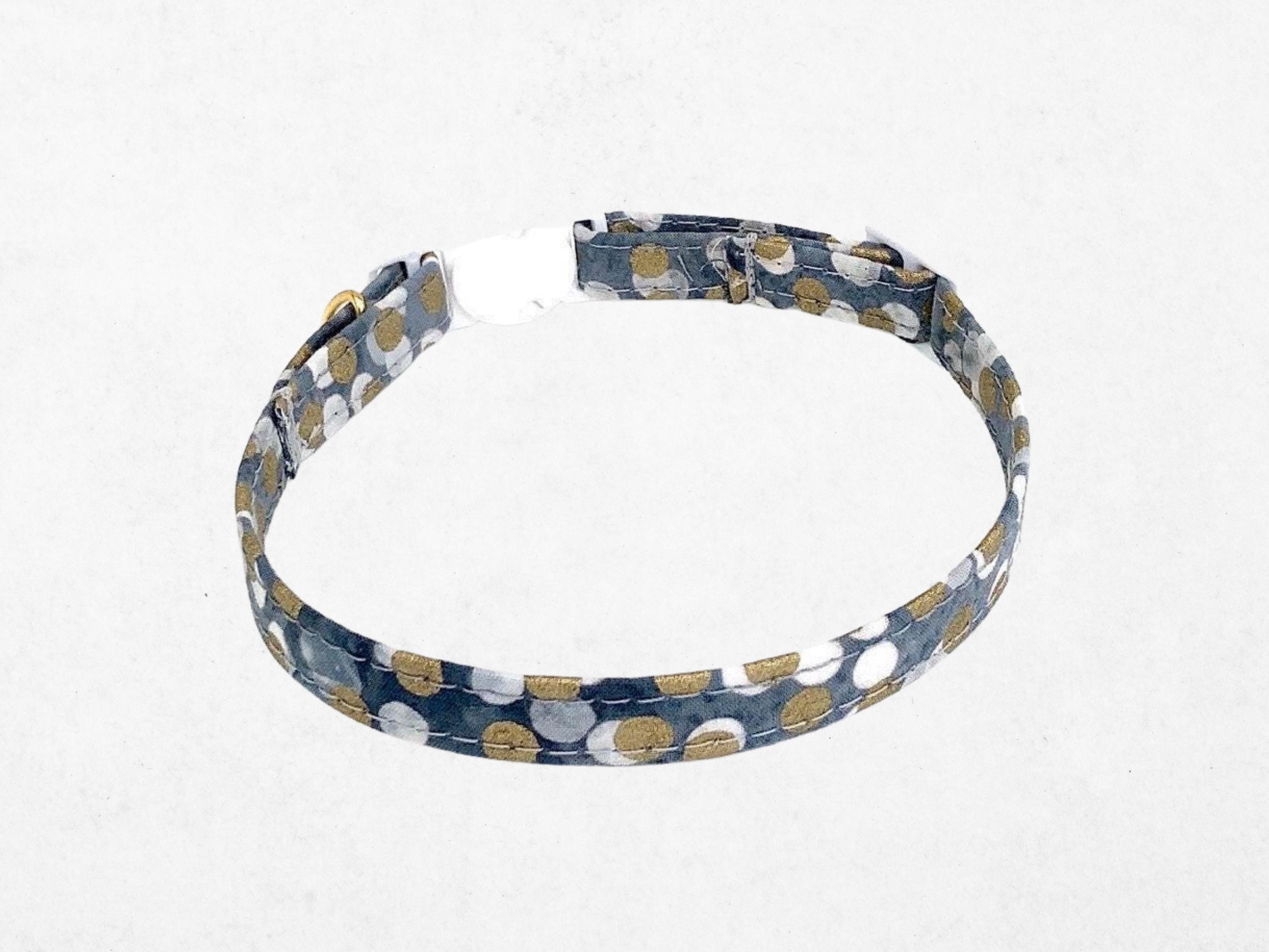 Discover the perfect blend of style and safety with this charming polka dot cat collar, thoughtfully designed for your small dog or kitten. Crafted from durable comfort fabric, it features a secure breakaway buckle that ensures peace of mind while your pet enjoys a cozy fit. Inspired by playful patterns and practical design, this gold pattern collar adds a touch of elegance to your furry friend's daily adventures.