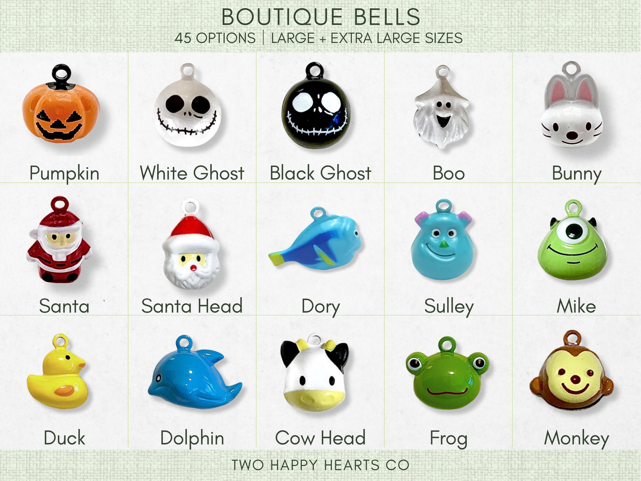 ✦ Variety of sounds: large metallic/pearl bells have a chime-like tone, ghost bells have gently muffled jingles, and heart bells, cowbells, and yellow flower bells have soft jingles