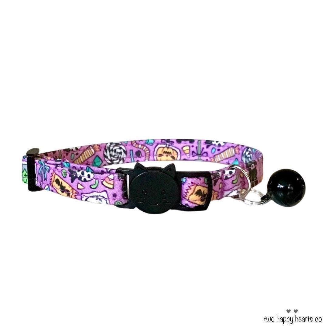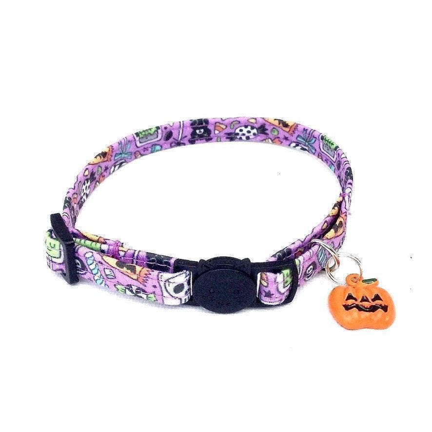 Celebrate the spooky season with a touch of elegance using this Halloween cat collar, designed in a rich gothic purple that perfectly complements your pet’s unique style. Crafted from soft fabric, this adjustable breakaway collar ensures comfort and safety for small cats and dogs alike. Whether you're looking for a seasonal cat collar or a gift for a cat lover, this handmade accessory combines charm and practicality seamlessly.