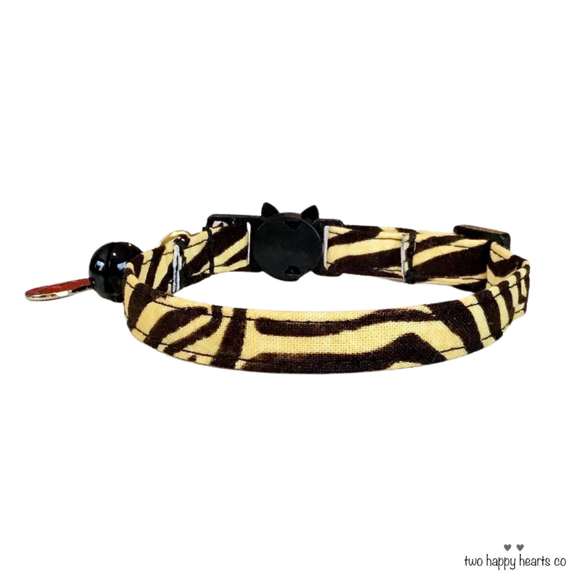 Every pet deserves a collar that combines safety, comfort, and style, which is why this breakaway cat collar with a striking tiger print pattern is a perfect choice for your small kitten or tiny dog. Thoughtfully handmade, it features a secure kitty buckle designed to release easily under pressure, ensuring your furry friend's safety without compromising on charm. The sturdy safety D ring allows for easy attachment of ID tags or bells, making it both practical and adorable.