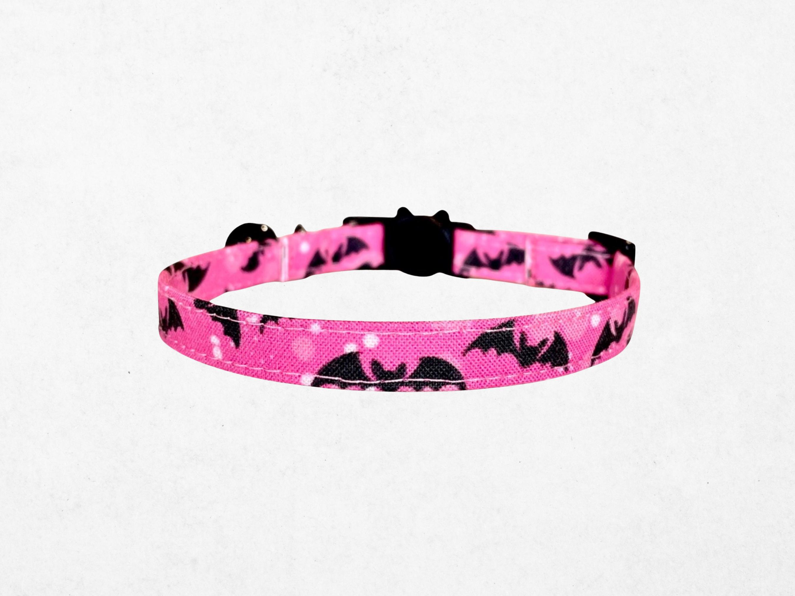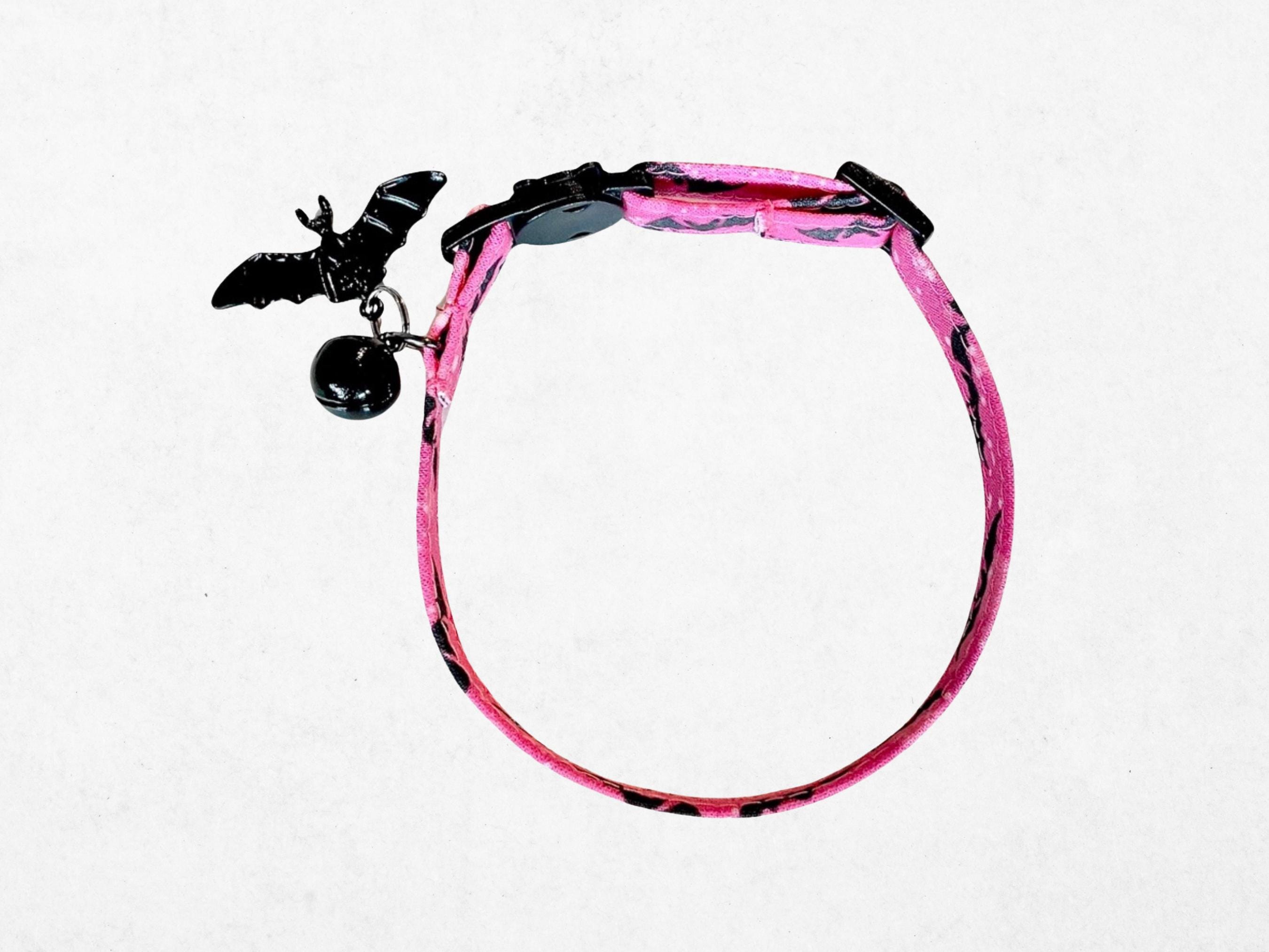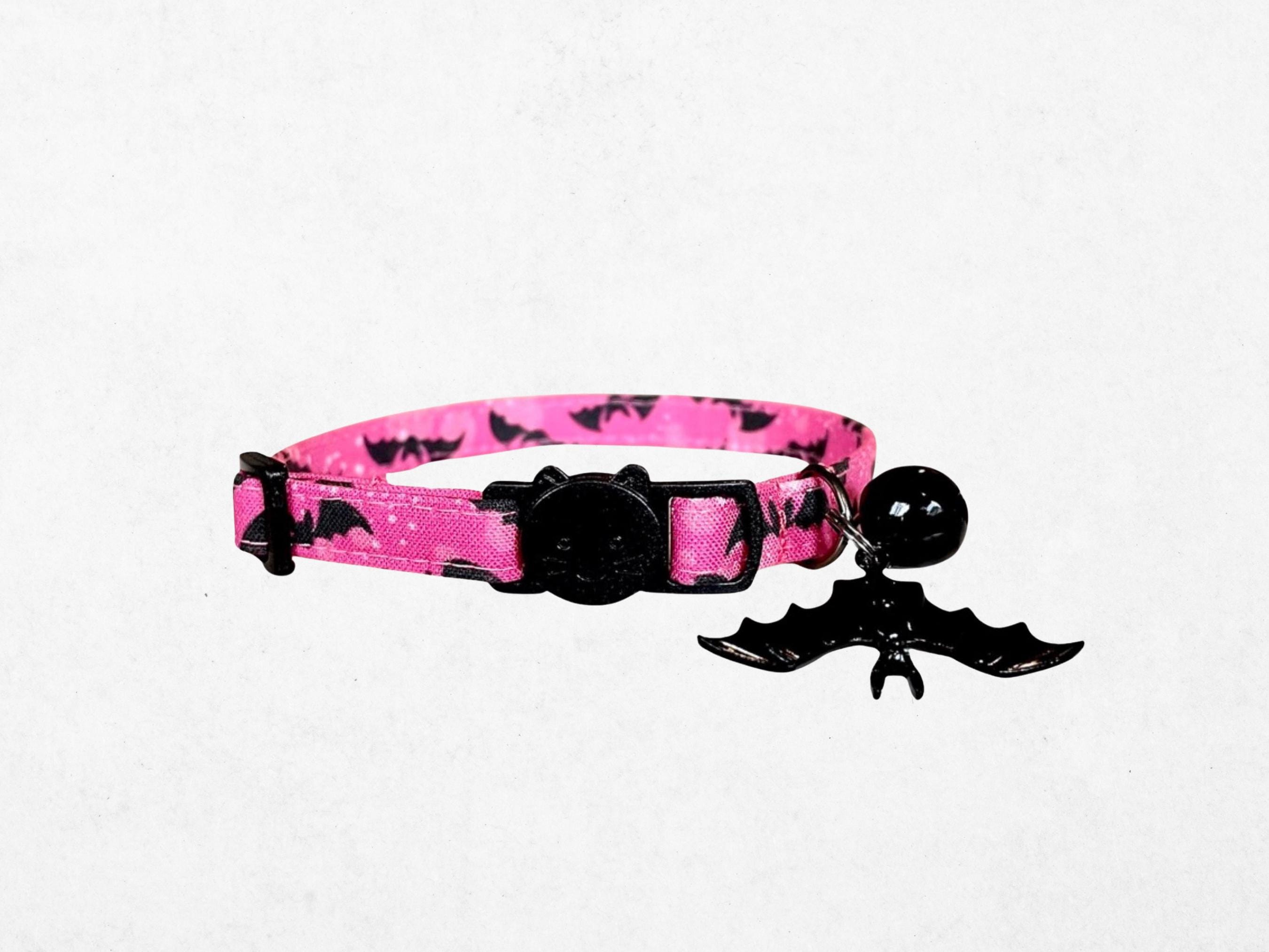 Celebrate the season with a delightful Halloween cat collar featuring a charming pink bat design that adds festive flair to your pet’s wardrobe. Perfectly crafted for kittens and small dogs, this safety buckle collar ensures comfort and security with every wear. Handmade with soft fabric, it combines a comfort fit collar style with practical charm and bell add-ons to keep your furry friend safe and stylish.