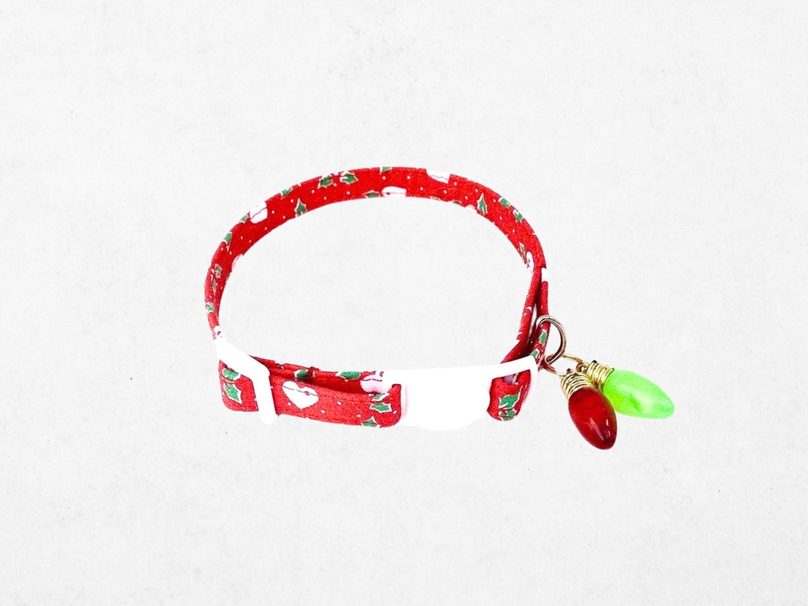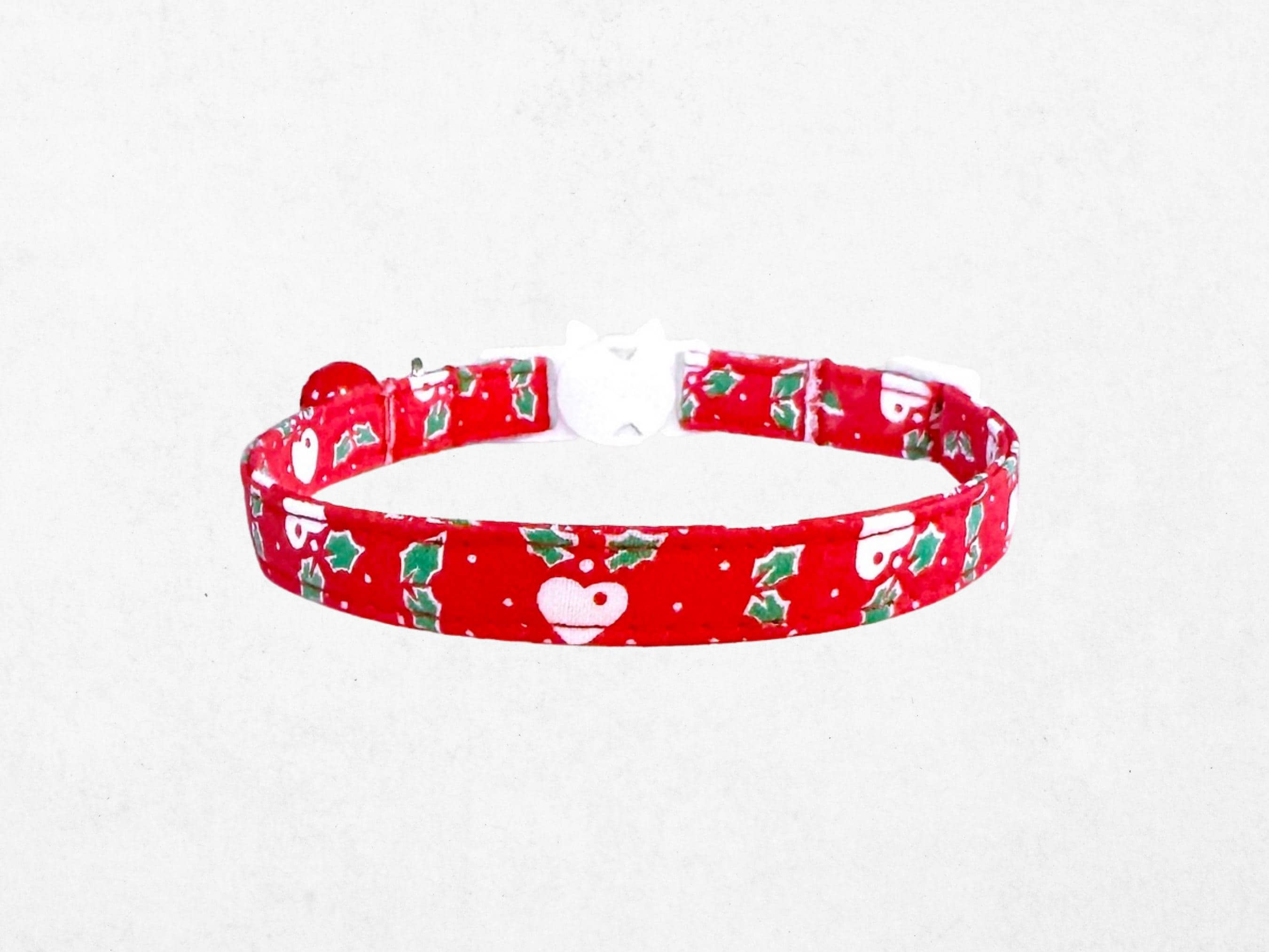Celebrate the festive season with a charming Christmas heart pet collar, designed to bring joy and safety to your furry friend. This handmade collar features a delightful red heart pattern that adds a touch of holiday spirit, perfect for small dogs and cats alike. Crafted with care, the breakaway cat collar ensures your pet's safety while keeping them stylish and comfortable.