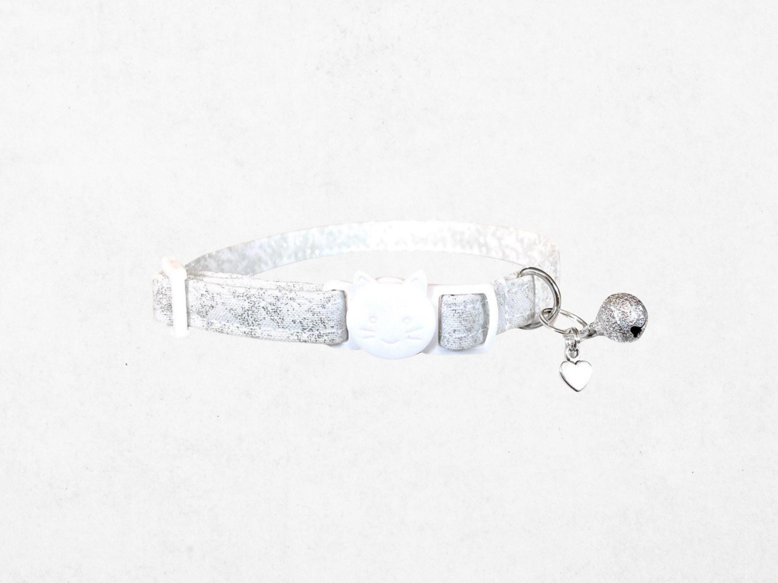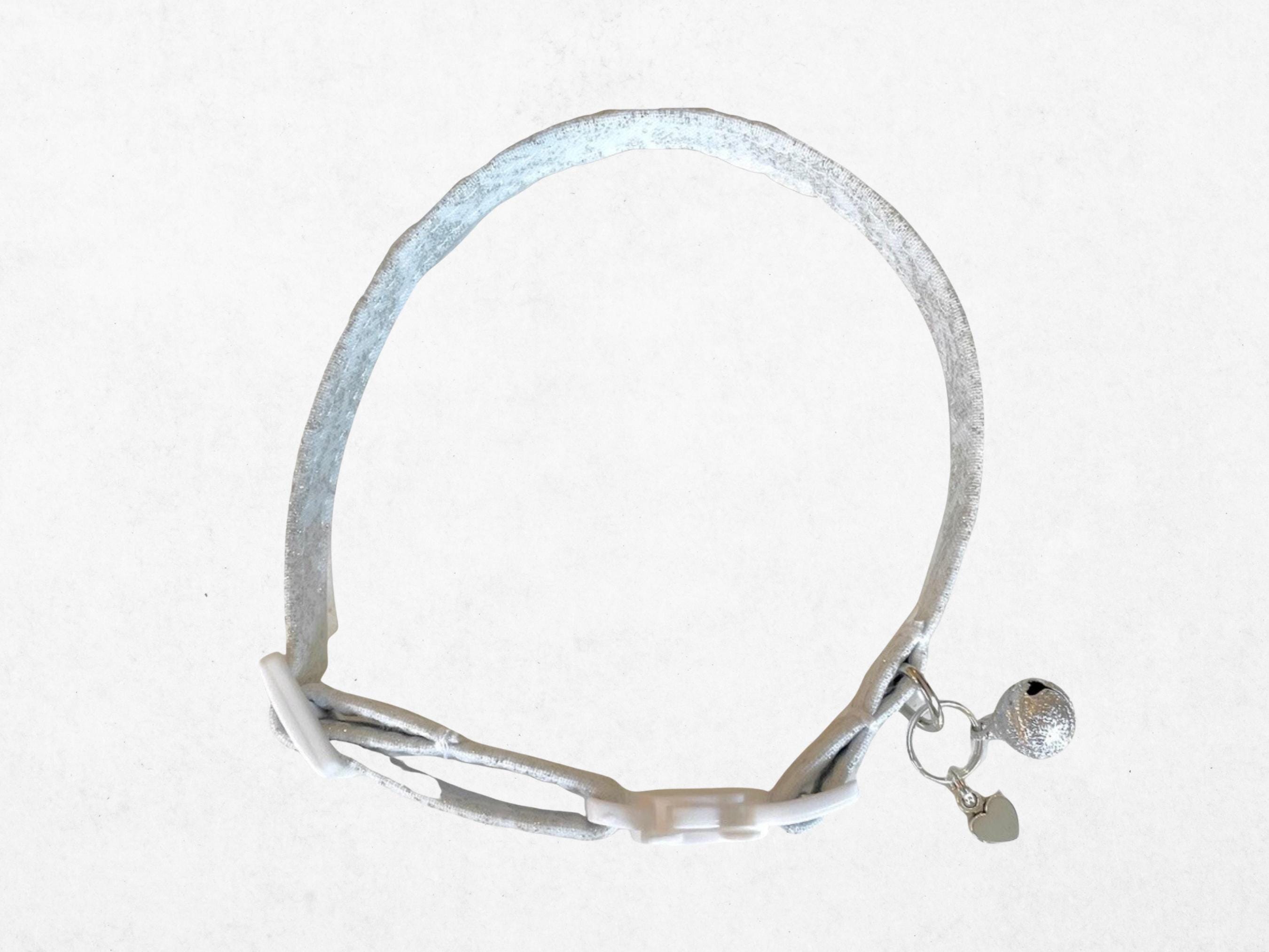 Discover the perfect blend of safety and style with this handmade cat collar, thoughtfully crafted for small dog use and kitten safety. Featuring a secure D ring attachment and an option for a non breakaway buckle, this collar offers both comfort and peace of mind for your furry companion. Each piece sparkles with charm, enhanced by optional bells and charms that add a playful touch to your pet's look.