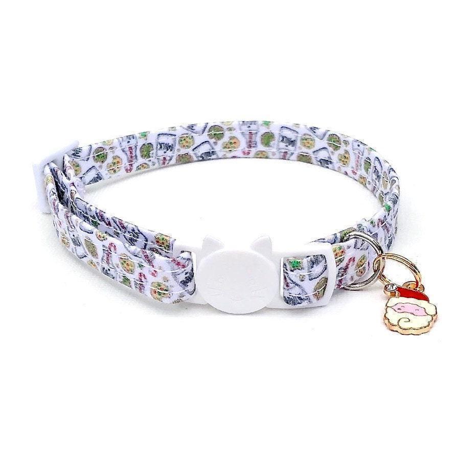 Celebrate the holiday season with a festive milk cookie pet collar designed to bring charm and comfort to your furry friend. This adjustable collar features a secure kitty buckle and a delightful Christmas cookie pet pattern, making it the perfect addition to your pet’s holiday wardrobe. Handmade with care by Two Happy Hearts Co, each collar combines safety and style for cats and small dogs alike.