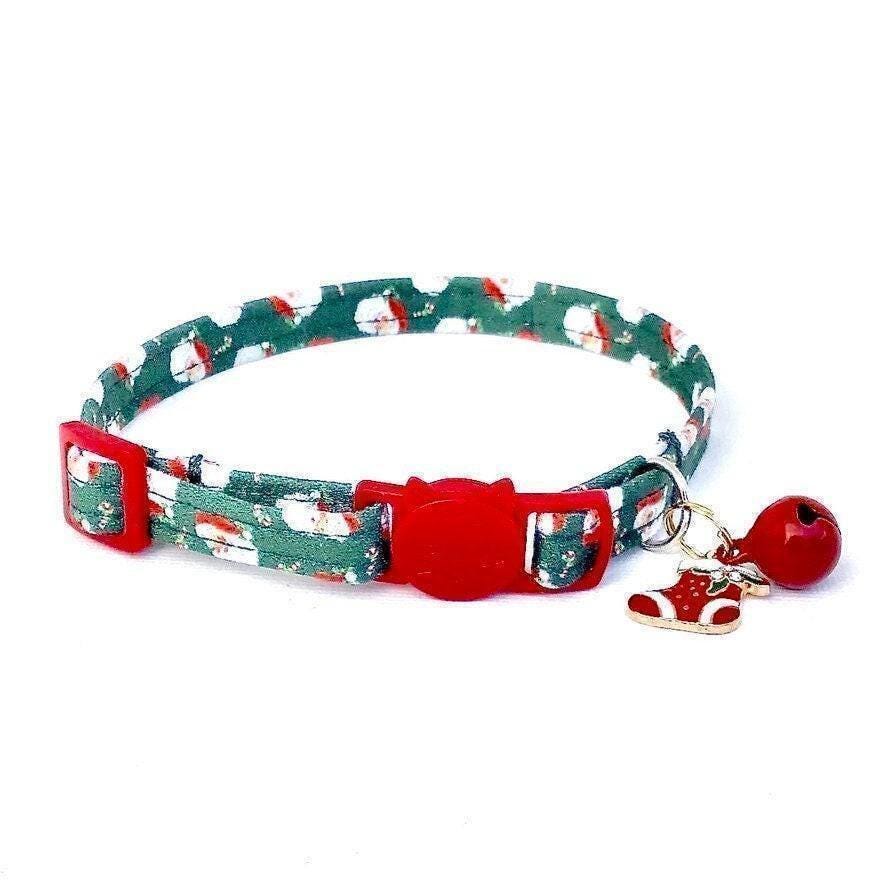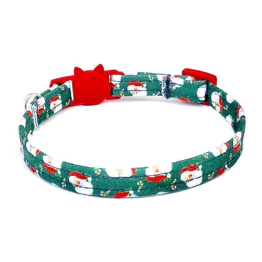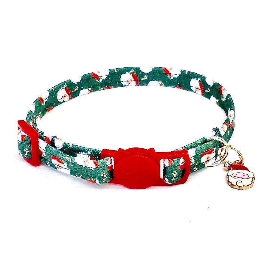 Celebrate the festive season with a fun Santa kitten collar designed to keep your furry friend safe and stylish. This green holiday collar features a secure breakaway buckle, perfect for kitten safety and comfort during all your seasonal adventures. Crafted with care, this comfort fit collar also suits small dog sizes, blending holiday cheer with practical design.