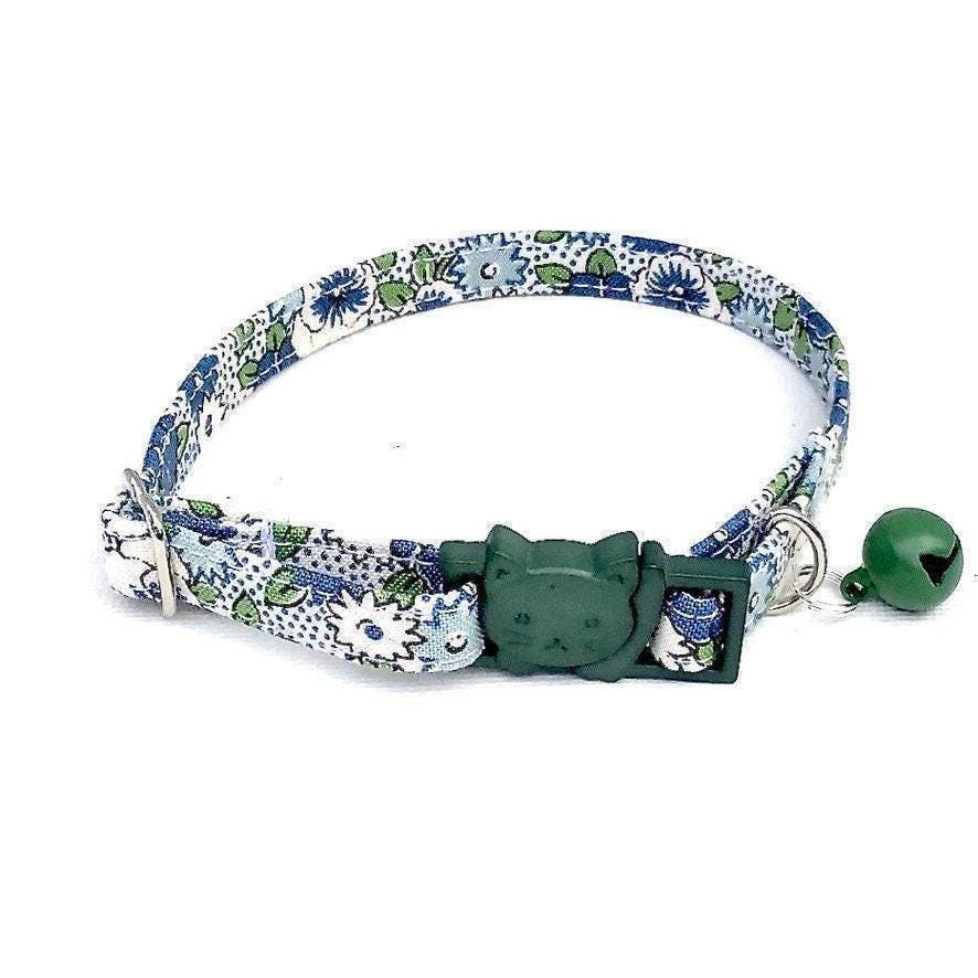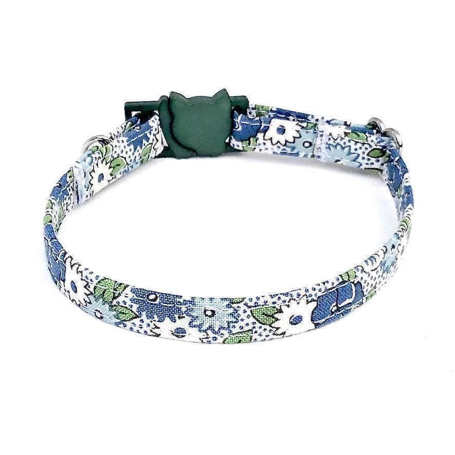 Celebrate your pet's unique charm with this handmade floral cat collar, designed for both style and safety. Featuring a green floral design, this pet safety collar offers an adjustable fit perfect for small and tiny dogs as well as cats. Crafted with care, it combines a secure breakaway buckle and a sturdy D-ring attachment to keep your furry friend comfortable and protected.