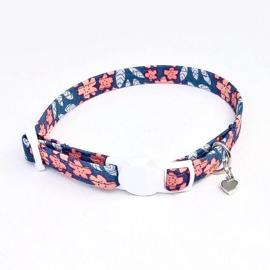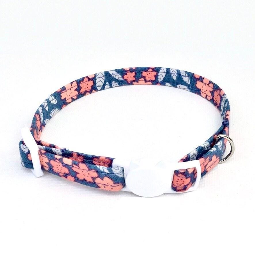Discover the perfect blend of safety, style, and comfort with this breakaway cat collar featuring a charming floral print in pink and blue flowers. Designed thoughtfully for small pets, this soft fabric collar ensures your furry friend enjoys both security and elegance. Whether you're looking for a kitten safety collar or a delicate accessory for your tiny dog, this adjustable collar adapts effortlessly to your pet's needs.