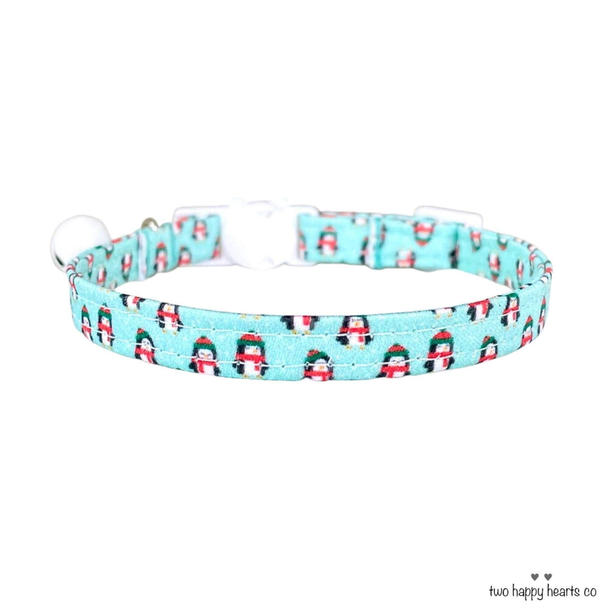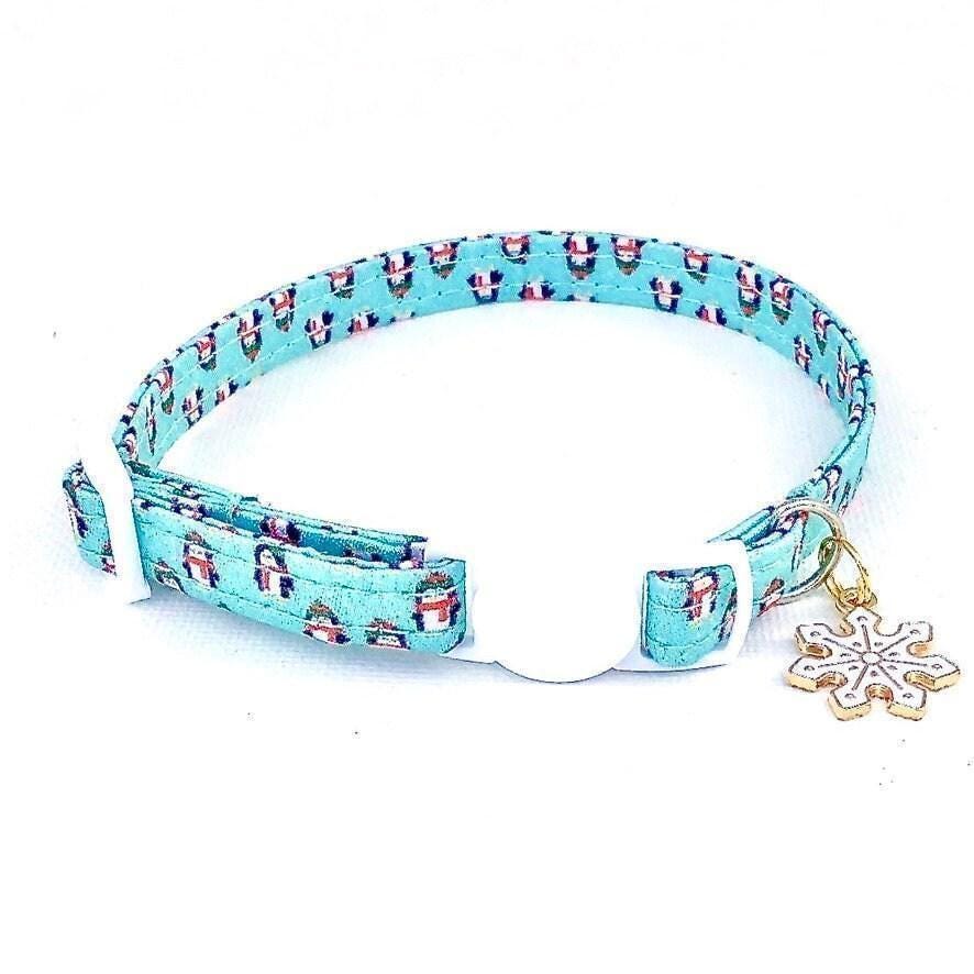 Celebrate your feline friend’s festive spirit with this charming winter print collar, featuring an adorable penguin design perfect for kittens and small dogs alike. Crafted from soft fabric for maximum comfort, this kitten safety collar ensures your pet stays cozy and secure during the chilly season. With thoughtful details like a breakaway buckle and a sturdy D-ring attachment, it blends style and safety seamlessly.