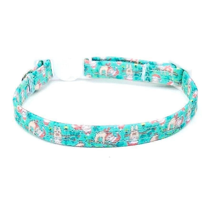 Celebrate the holiday season with a festive Christmas sloth pet collar that brings charm and comfort to your furry friend. Designed for small dogs and cats, this adjustable collar features a secure breakaway buckle and a sturdy D-ring, perfect for attaching ID tags or delightful mini bells. Handmade with care, each collar showcases unique pattern variations, making every piece truly special.