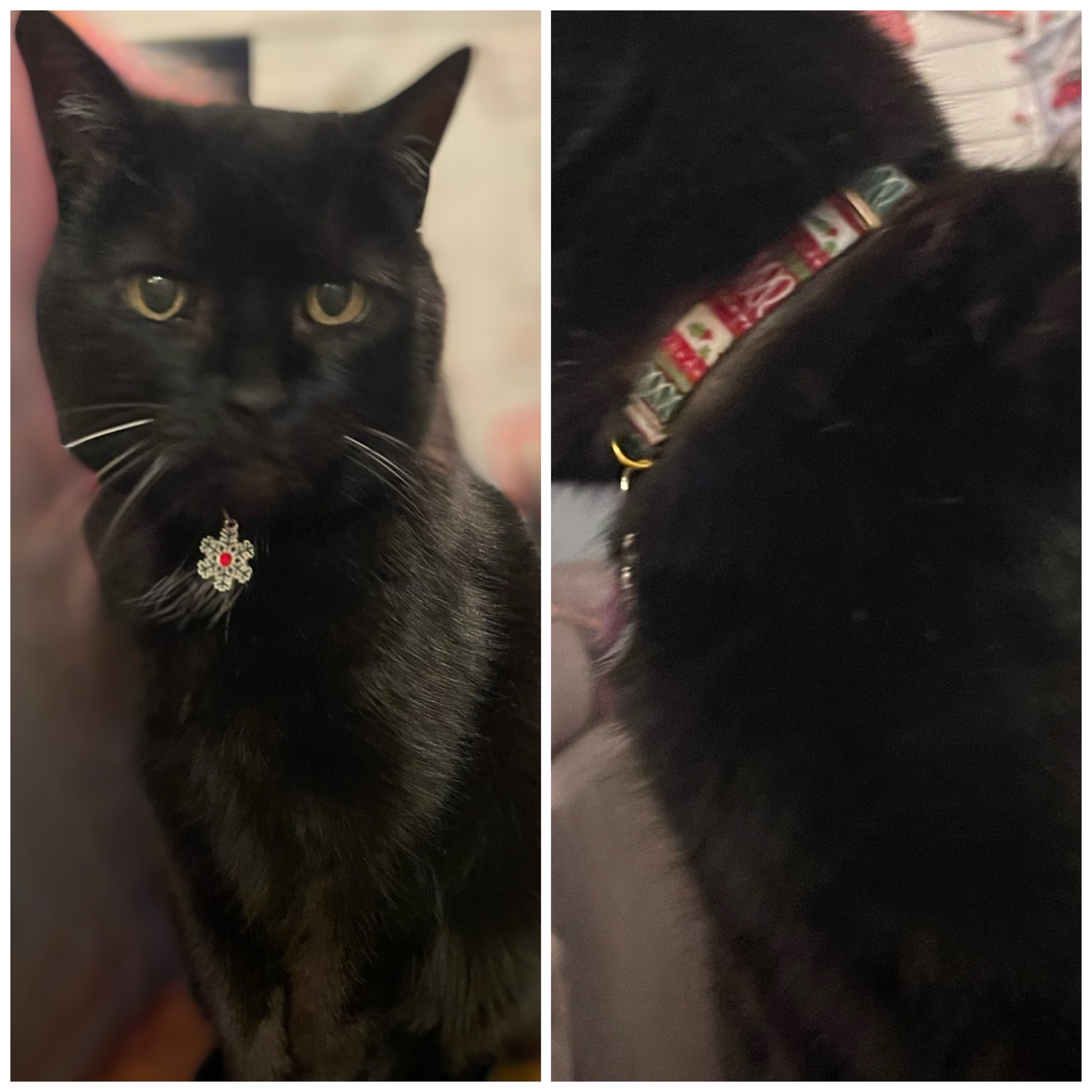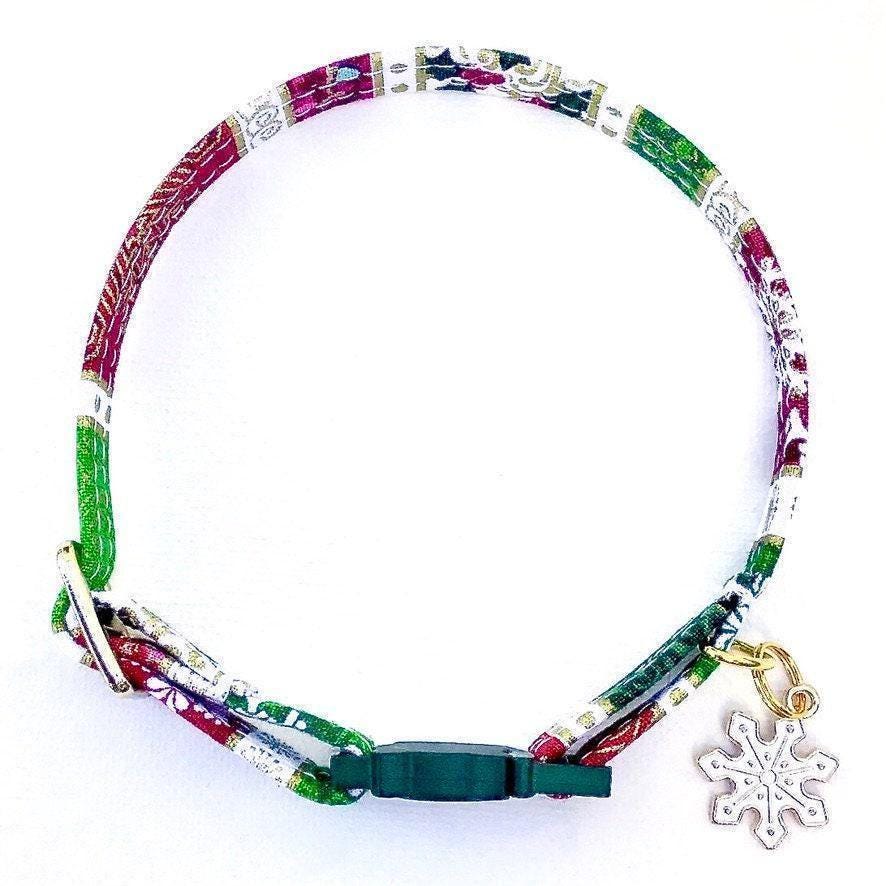 Celebrate your furry friend's festive spirit with this charming jingle bell collar, thoughtfully designed for comfort and safety. Perfect as a winter pet gift, it combines the joy of a delicate bell with the practicality of a D ring for tags, making it both beautiful and functional. Handmade with care, this collar adds a touch of holiday magic to your cat or small dog's everyday adventures.