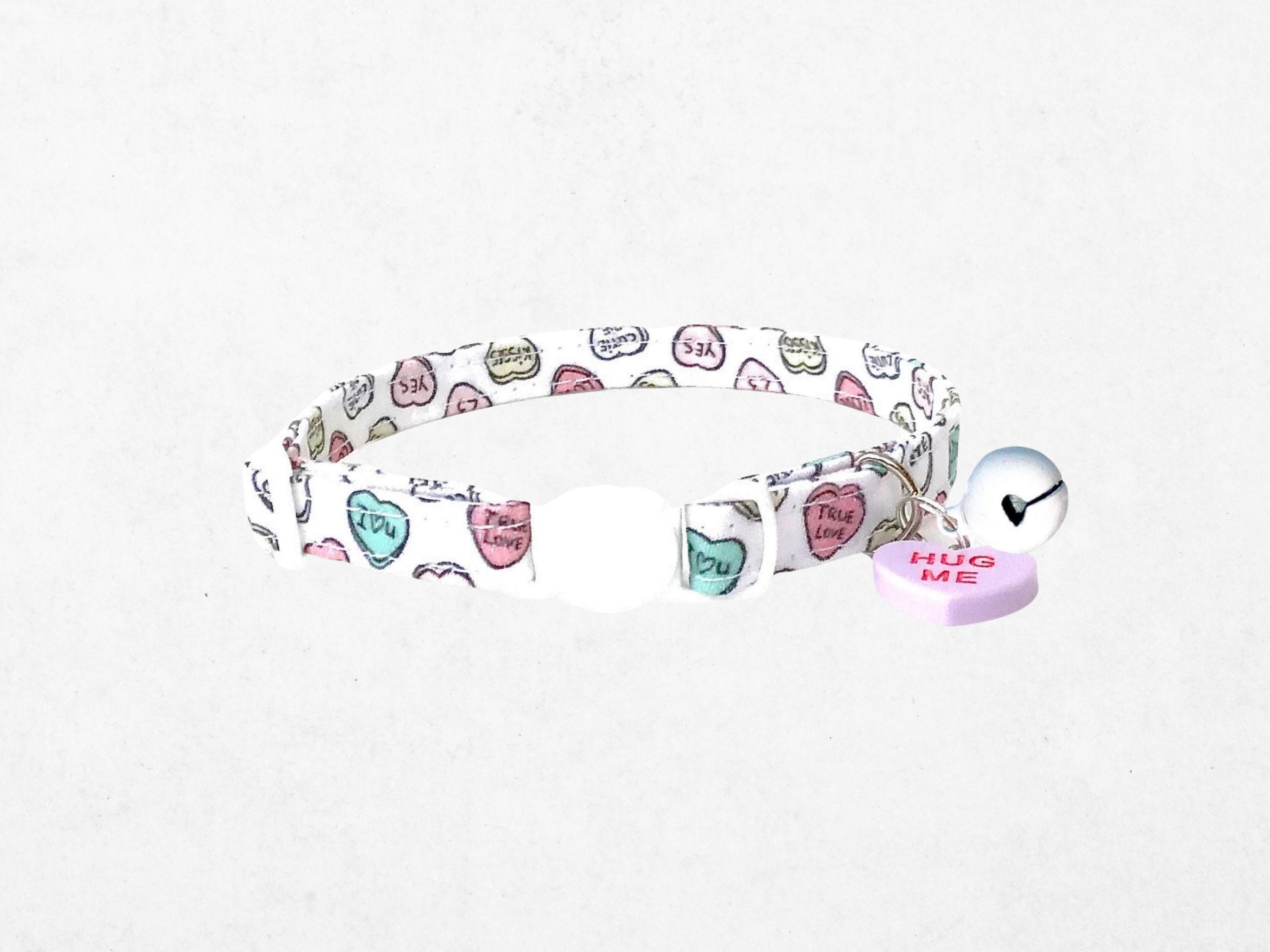 Celebrate your feline's charm with this lovingly handmade breakaway cat collar featuring a delicate heart pattern, perfect for Valentine's Day or any day you want to show some love. Crafted with safety and style in mind, this collar includes a secure cat safety buckle that releases under pressure, ensuring your pet’s comfort and protection. The adjustable sizing and sturdy D-ring attachment make it an ideal accessory for cats, small dogs, and tiny pups alike.
