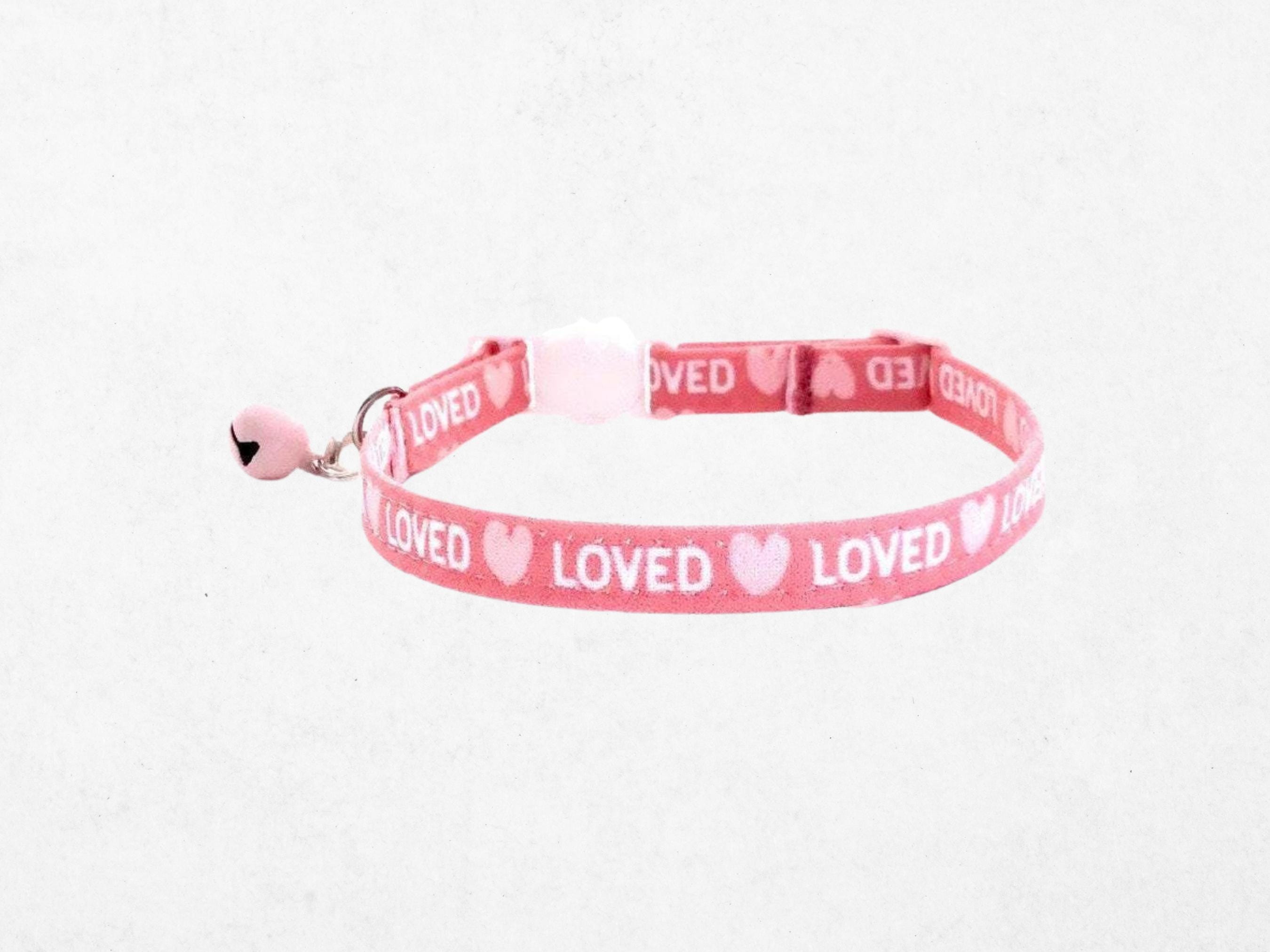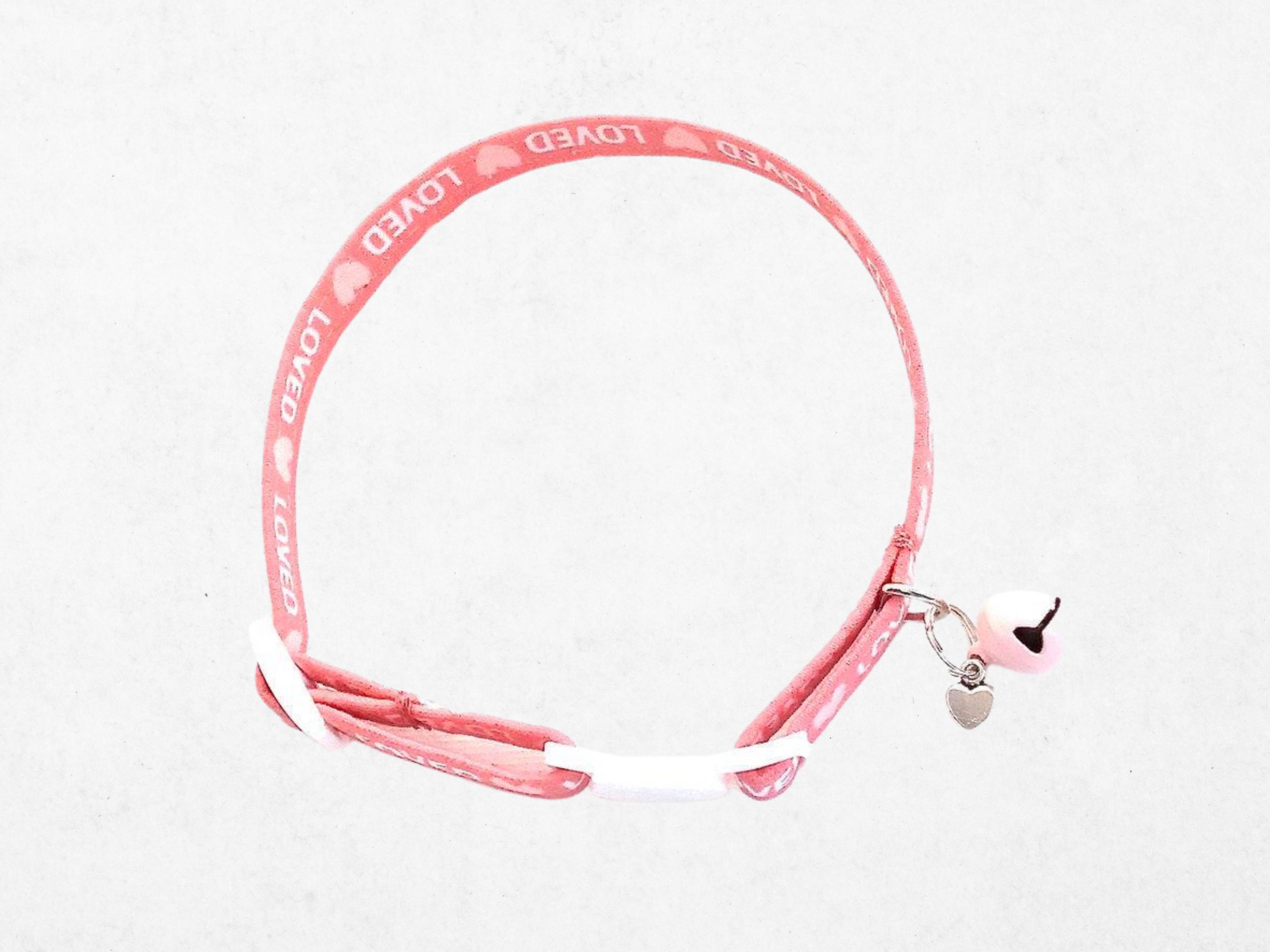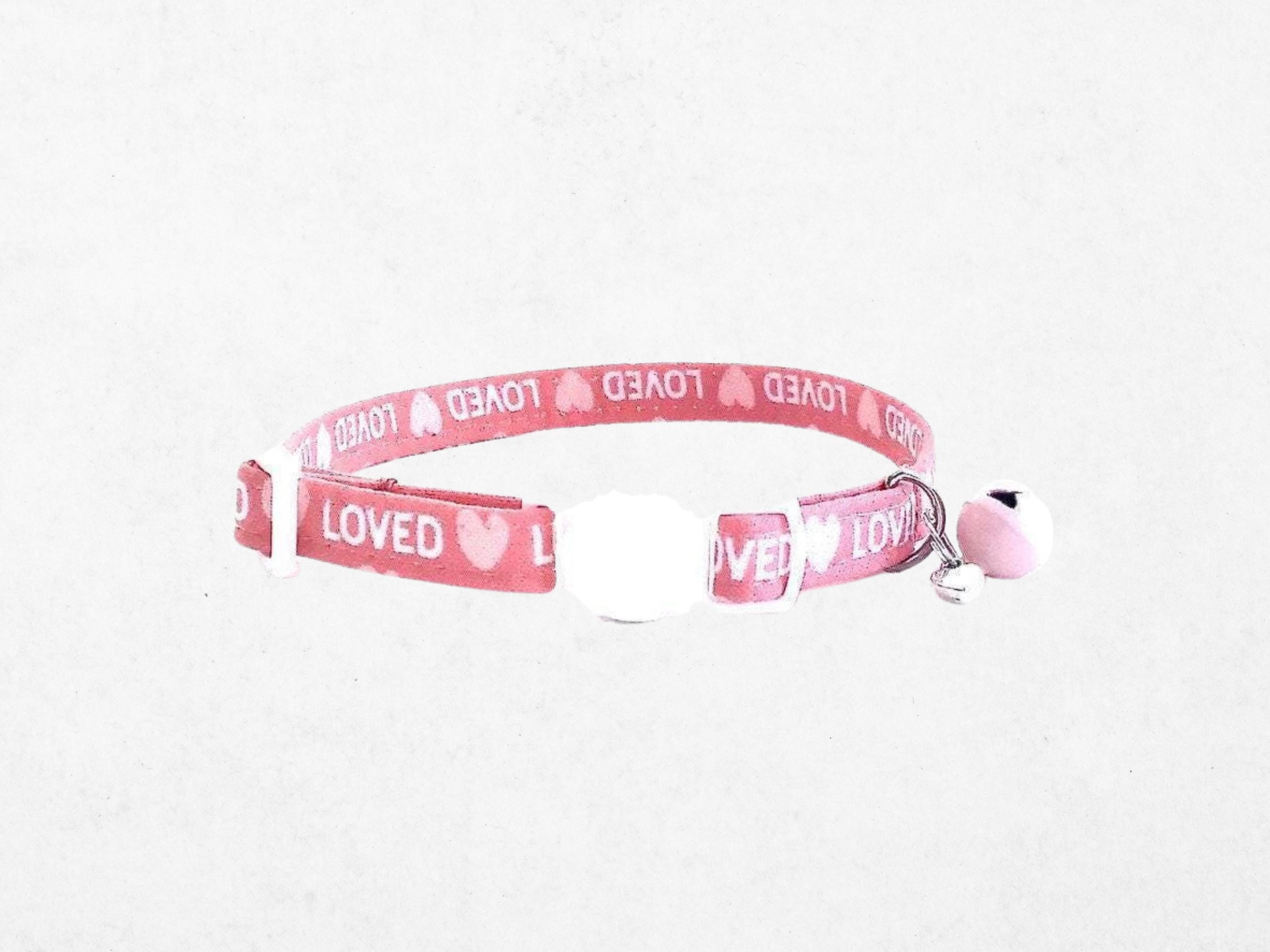 Celebrate your pet's unique charm with this handmade pink heart cat collar, thoughtfully designed for comfort and safety. Featuring a secure breakaway buckle, this collar offers peace of mind while adding a cute cat accessory that stands out. With a sturdy D-ring attachment and an optional bell charm, it’s the perfect comfort fit collar for cats, kittens, and small dogs alike.