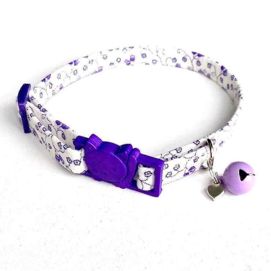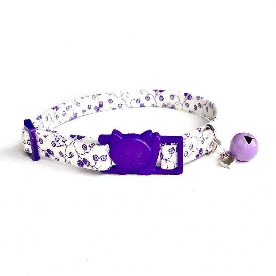 Discover the perfect blend of safety and style with this floral purple collar, thoughtfully designed for kittens and small dogs. Crafted from soft fabric and featuring a secure breakaway cat collar buckle, it offers comfort and peace of mind for every pet owner. The optional bell adds a charming touch, making this floral purple collar a delightful accessory that celebrates your furry friend's unique personality.