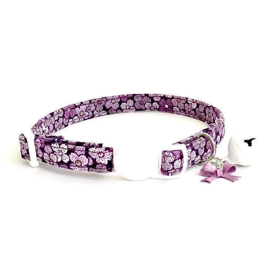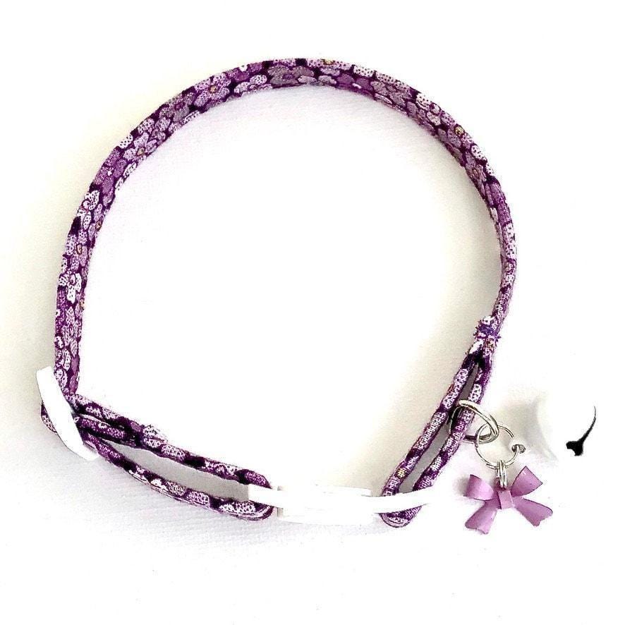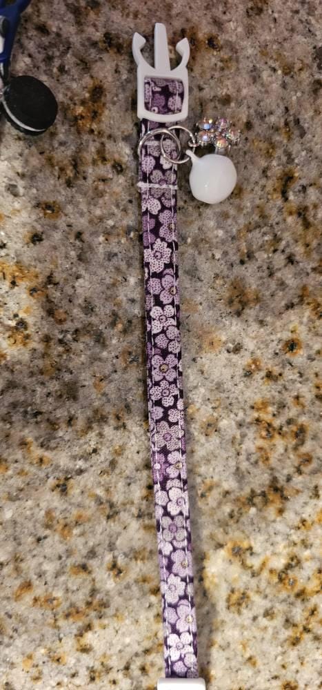 Experience the perfect harmony of safety and style with this floral purple collar, designed especially for your beloved cats and small dogs. Featuring a breakaway cat collar mechanism and a kitten safety buckle, it offers peace of mind while showcasing charming purple floral patterns. Crafted from medium-firm fabric, this adjustable comfort fit collar includes a convenient D-ring attachment for tags or bells, making it as practical as it is beautiful.
