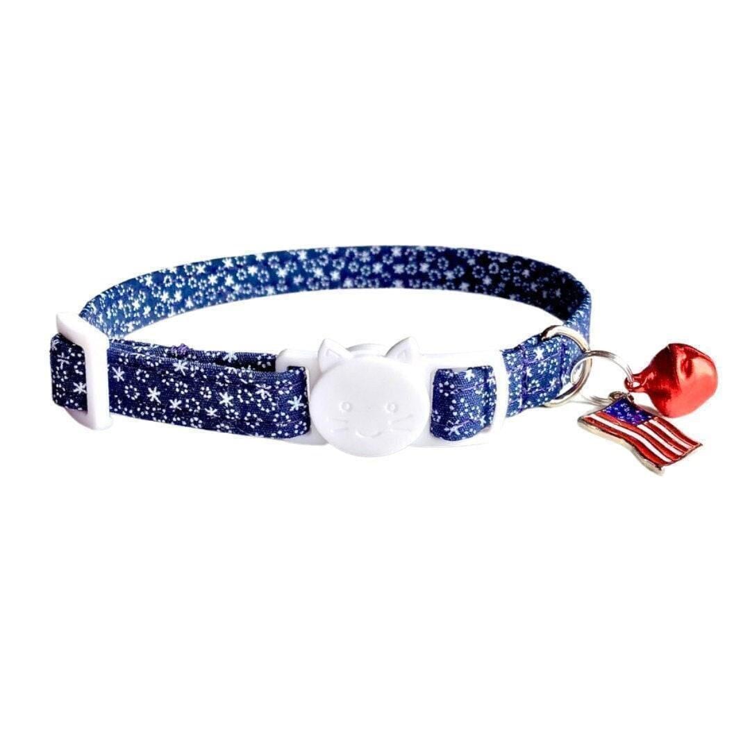 Celebrate your pet's unique charm with this patriotic America print collar, thoughtfully designed for comfort and safety. Featuring a reliable breakaway cat collar buckle, it ensures your furry friend stays secure while showcasing a stylish navy green fabric that captures the spirit of the USA. Perfect for small dogs and cats alike, this handmade accessory blends functionality and festive flair effortlessly.