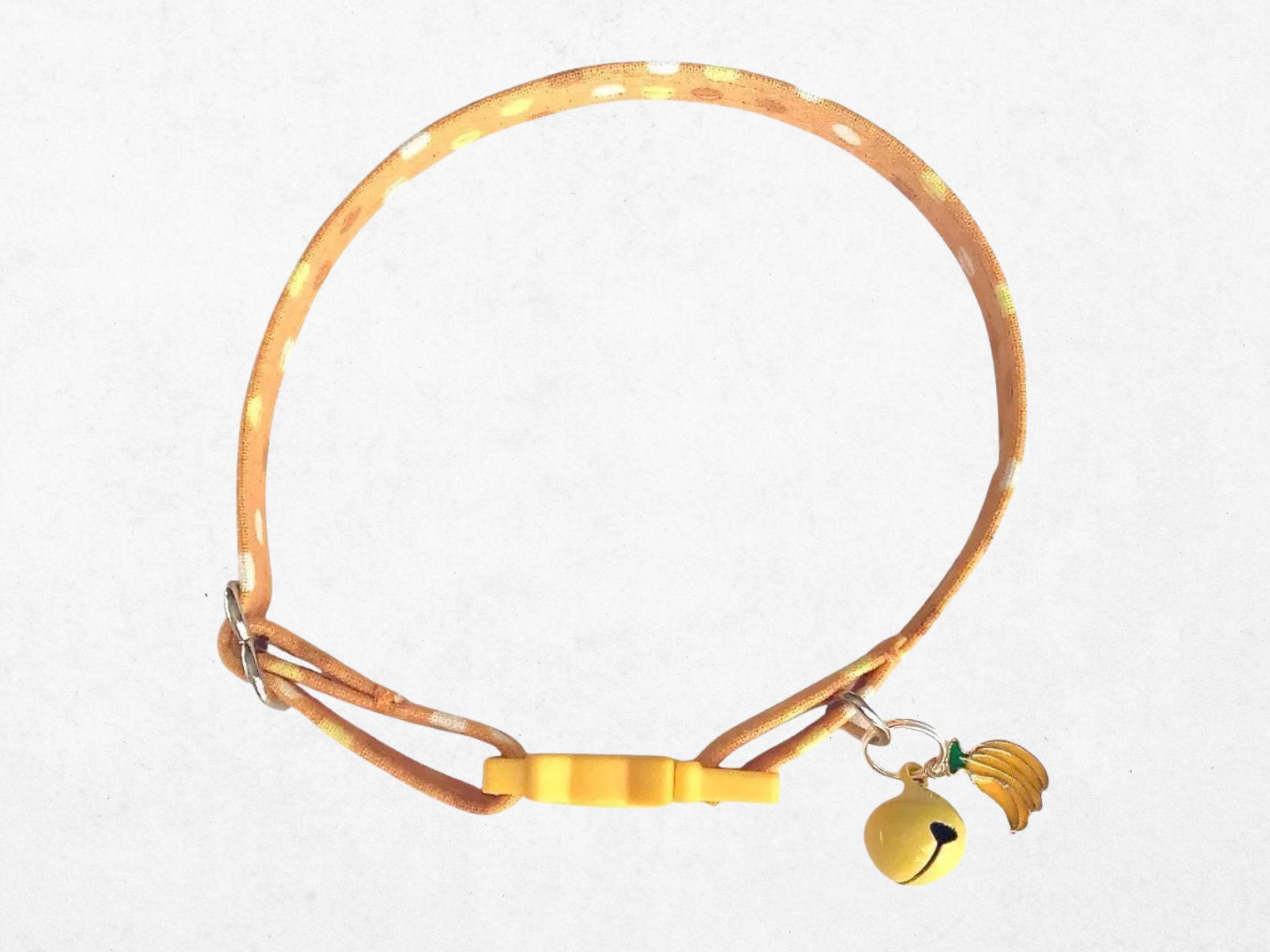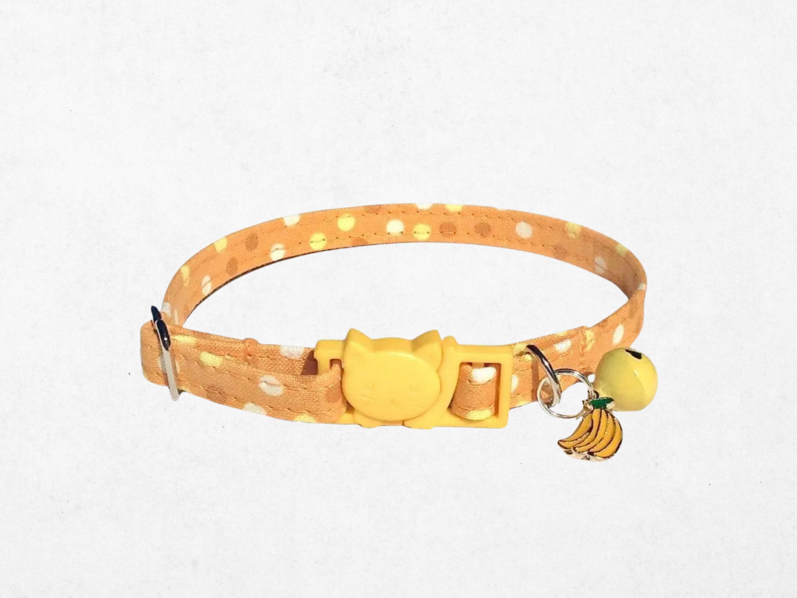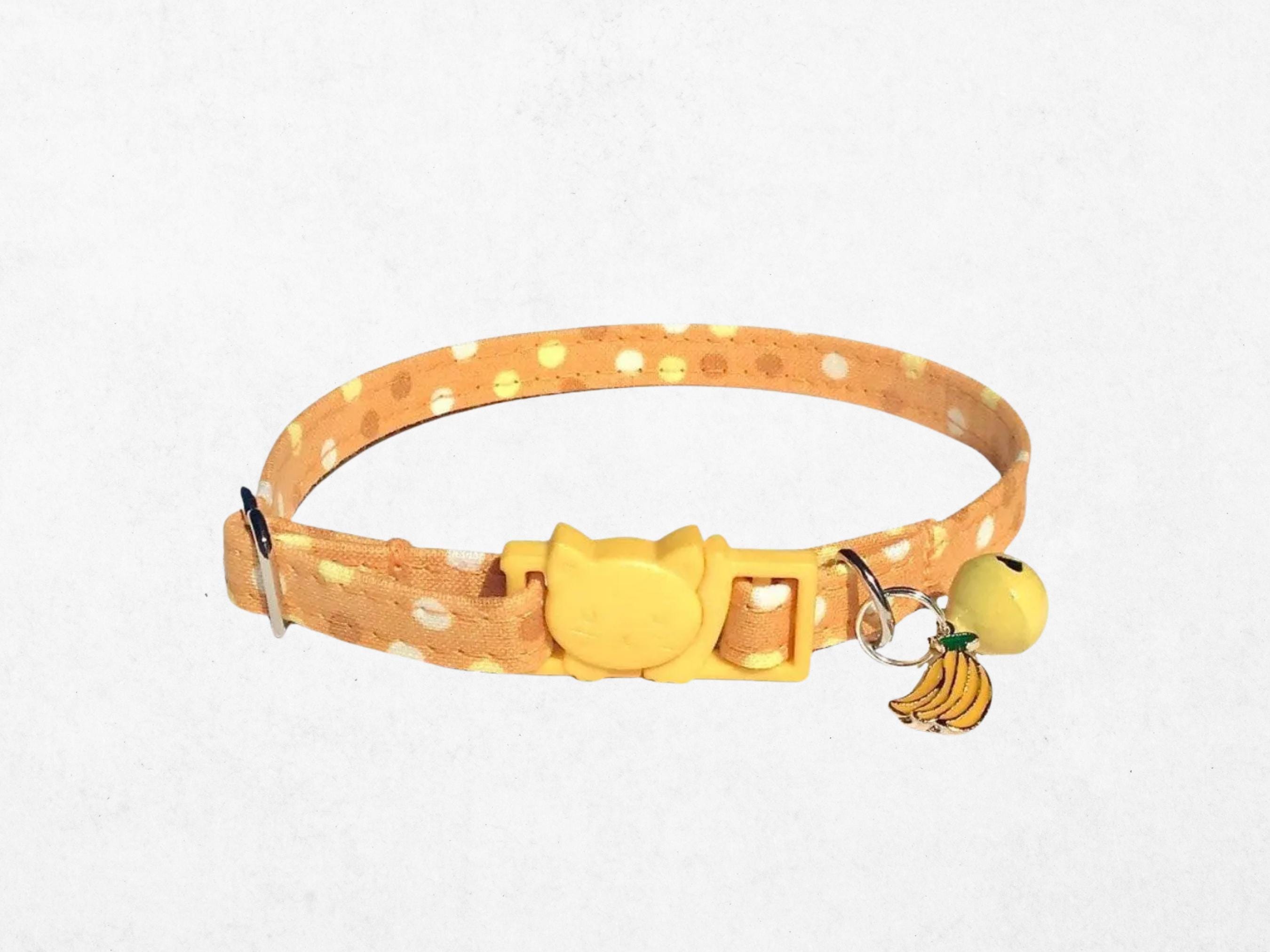 Discover the perfect blend of charm and safety with this playful banana cat collar featuring a delightful polka dot design. Designed for small pets, this adjustable breakaway collar ensures a secure yet comfortable fit for your curious kitten or tiny dog. Handmade with lightweight fabric, it adds a whimsical touch while prioritizing your pet's well-being.
