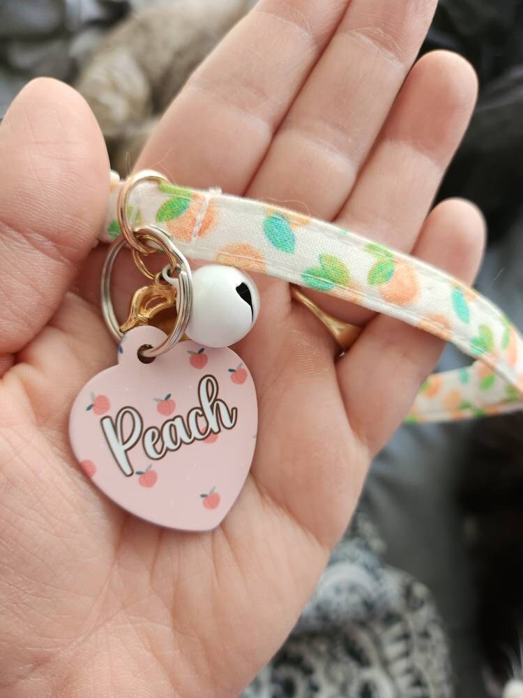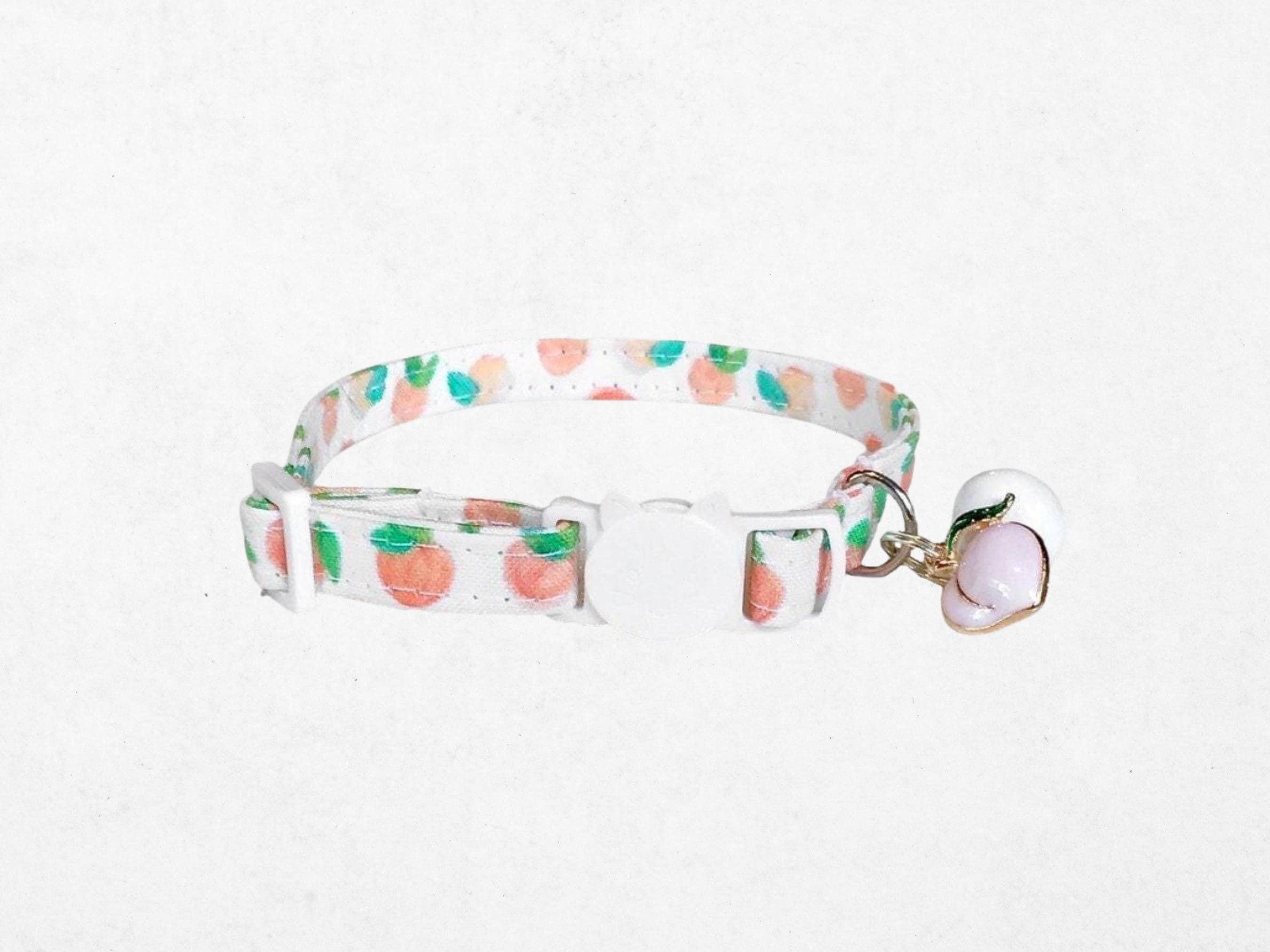 Celebrate your cat's playful spirit with this charming collar featuring a summer fruit pattern, designed for both comfort and safety. Crafted with an adjustable breakaway buckle, it ensures your kitty's security while offering a perfect fit for cats and small dogs alike. The peach cat collar's lightweight fabric and thoughtful design make it an ideal accessory for everyday wear.