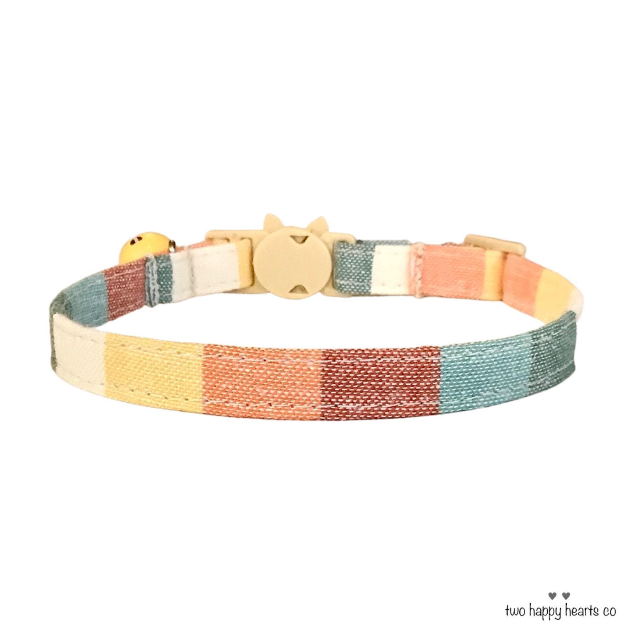 Celebrate the cozy charm of autumn with this boho cat collar, inspired by the warm hues of striped fall pumpkin patches. Designed with safety and style in mind, this adjustable breakaway buckle collar is perfect for kittens and small dogs who deserve both comfort and seasonal flair. Crafted from lightweight fabric, it brings a rustic autumn collar vibe that complements your pet’s unique personality.