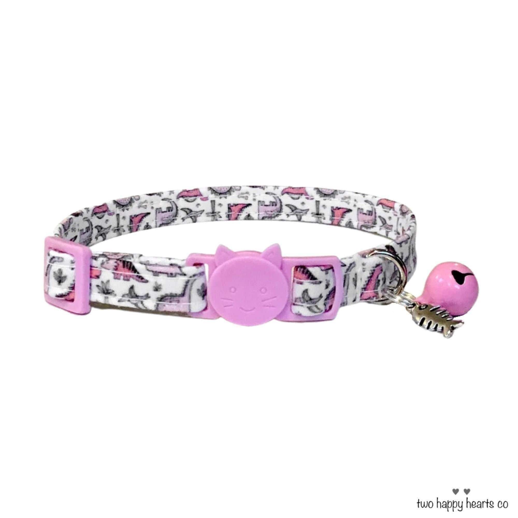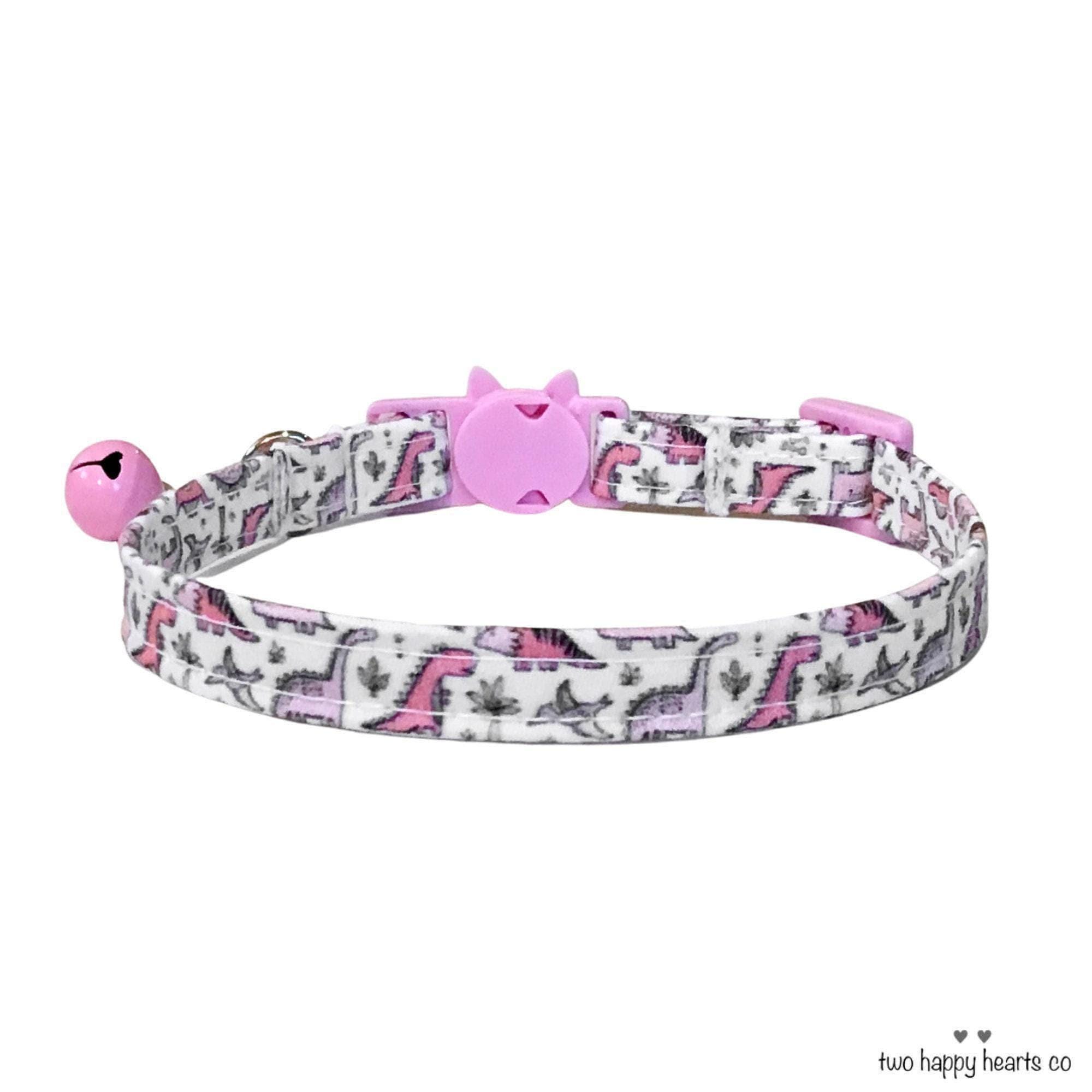 Discover the perfect blend of safety, comfort, and style with this pink adjustable cat collar, thoughtfully designed for your beloved pet. Handmade with medium-firm fabric, it ensures a secure yet gentle fit, making it ideal for small dogs and cats alike. Featuring a durable D-ring attachment, this dinosaur pet collar adds a playful touch while keeping your furry friend safe and charming.