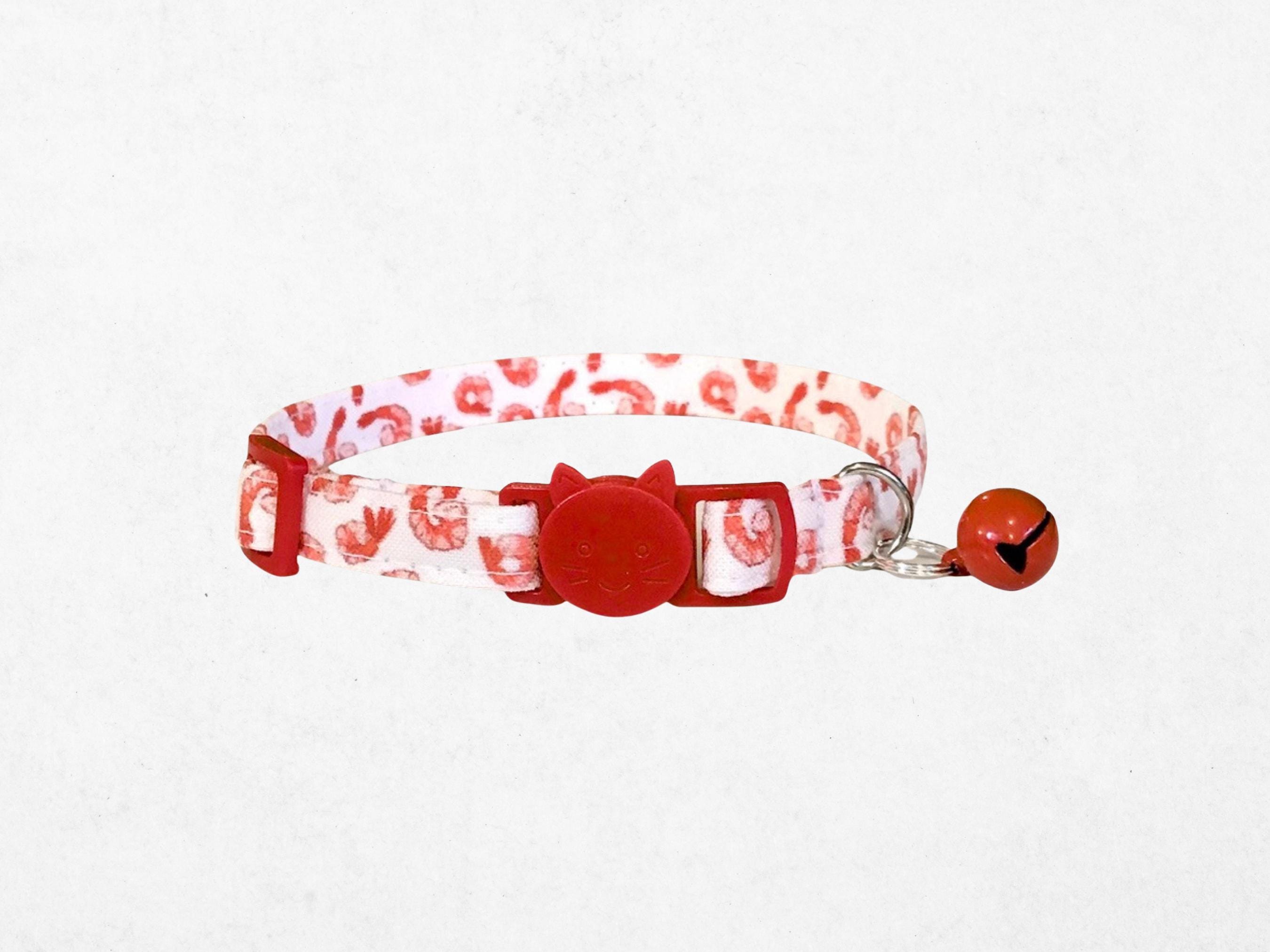 Delight your furry companion with this charming shrimp cat collar, thoughtfully designed for both kittens and small dogs. Featuring a cozy soft fabric collar adorned with a vibrant red crustacean print, it brings a touch of ocean-inspired whimsy to your pet's everyday look. The adjustable fit and secure D ring attachment ensure comfort and practicality for your playful friend.