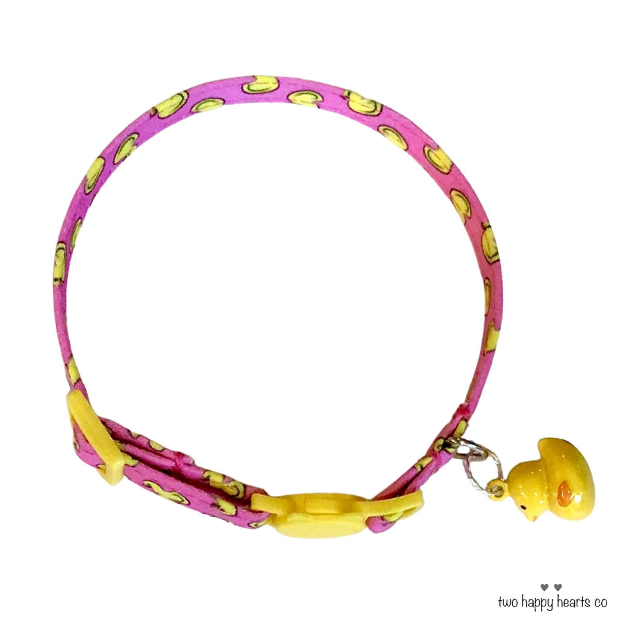 Discover the perfect blend of safety, style, and comfort with this adjustable breakaway collar, designed especially for your beloved cat or small dog. Featuring a charming rubber ducky pattern, this pink cat collar adds a playful touch to your pet's daily adventures. Handmade with care, it offers a secure fit and delightful details that make every outing special.