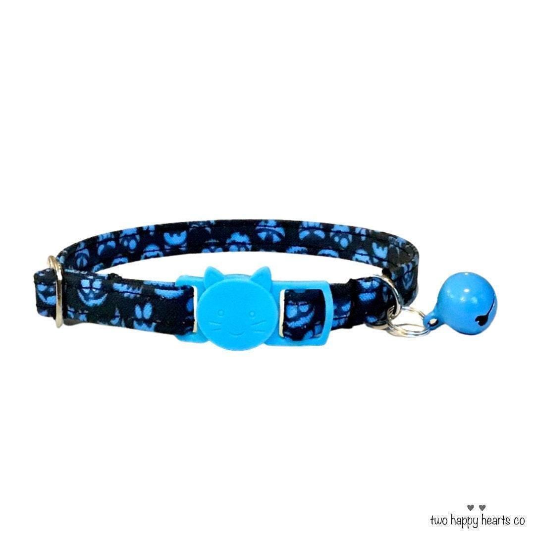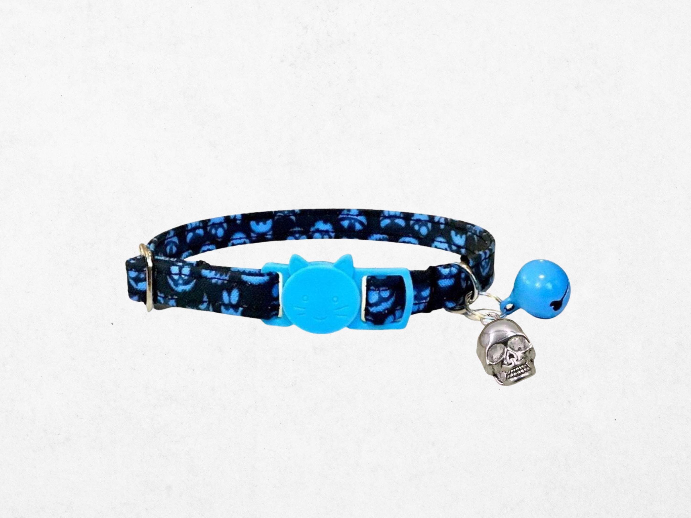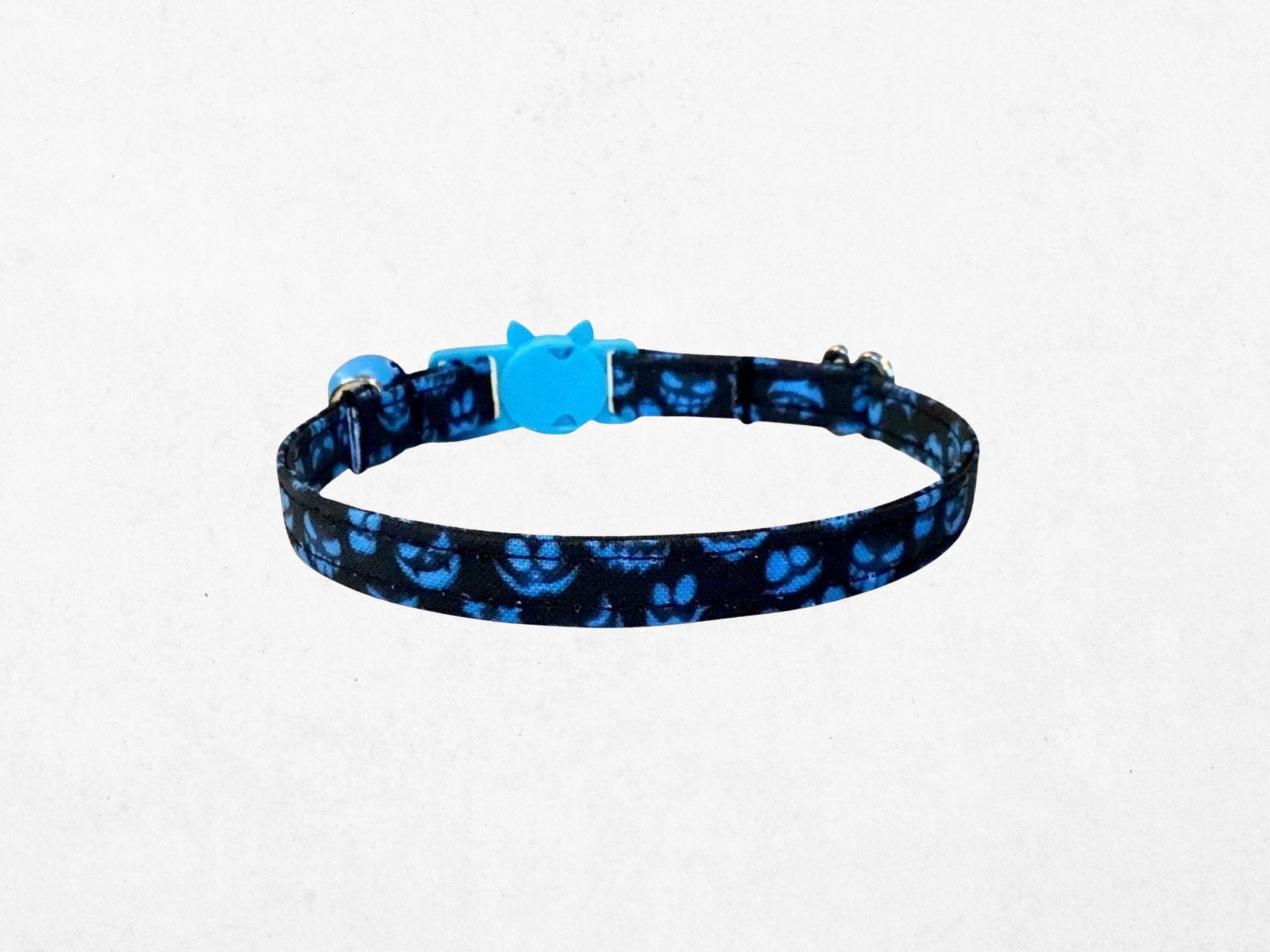Celebrate the spooky season with a touch of eerie elegance using this handmade ghost print collar, designed to keep your pet safe and stylish. This spooky blue cat collar features an adjustable fit, perfect for both cats and small dogs, blending comfort and charm effortlessly. Whether you're looking for a unique creepy cat gift or a Halloween accessory, this collar stands out with its thoughtful design and quality craftsmanship.