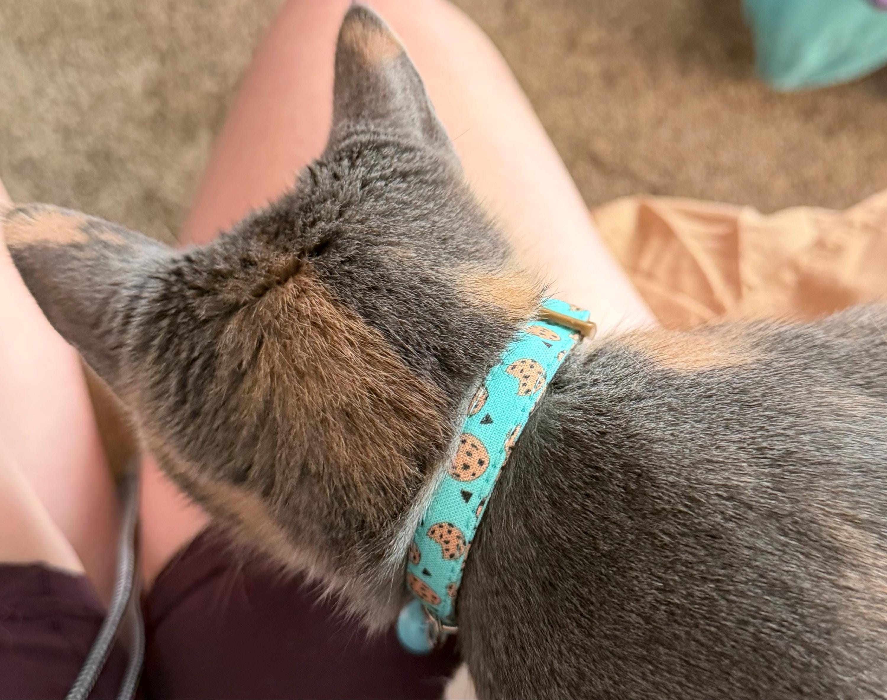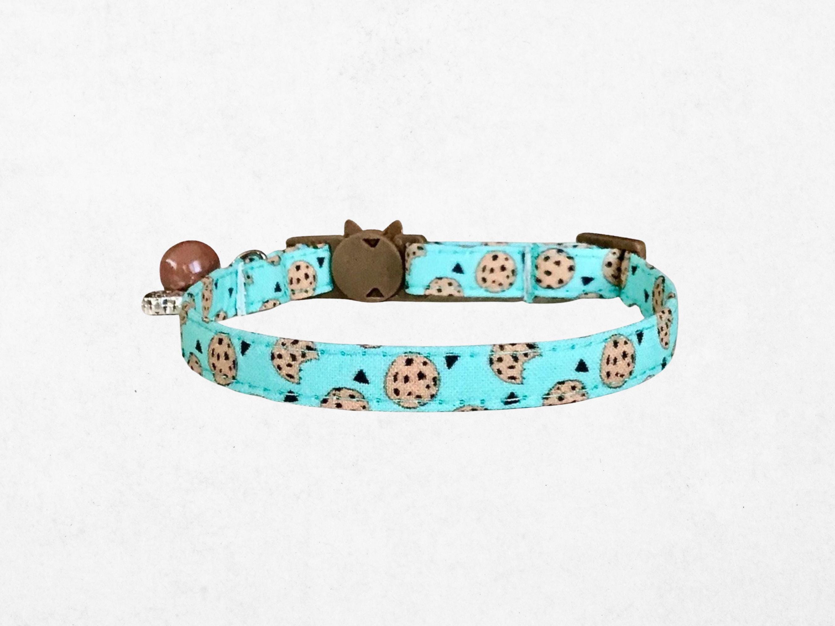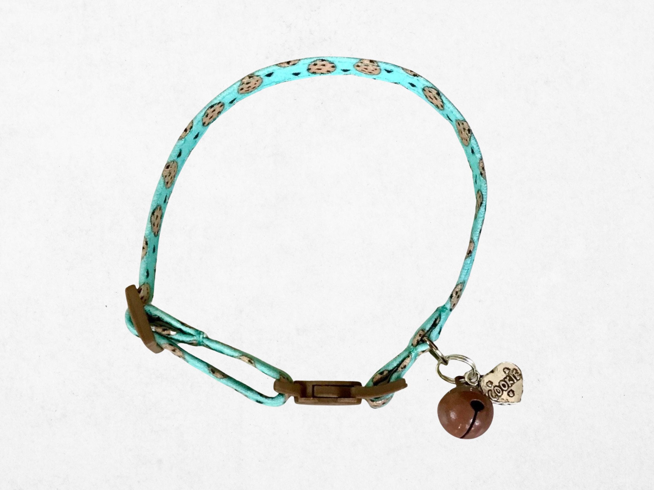 Discover the charm of our handmade Blue Chocolate Chip pet collar, designed for comfort and style with an adjustable fit perfect for kittens and small dogs. This Cookie Pet Collar features a secure breakaway buckle, ensuring your furry friend's safety while adding a delightful touch with optional charms and bells. Crafted thoughtfully to balance durability and softness, it’s an ideal accessory for any pet needing a cozy, reliable collar.
