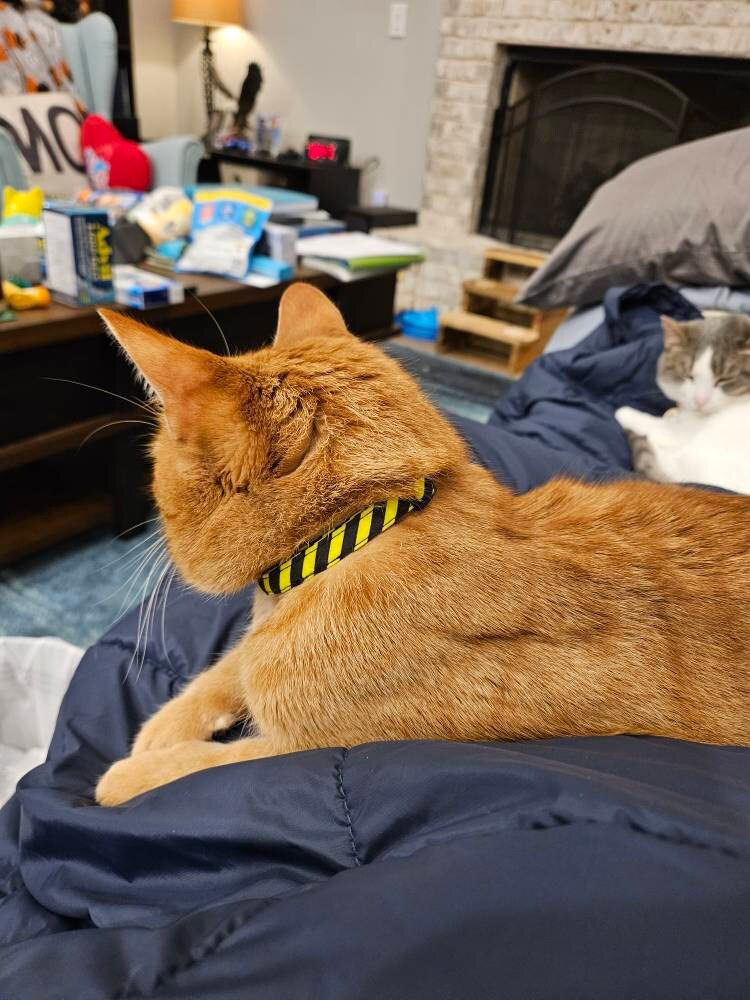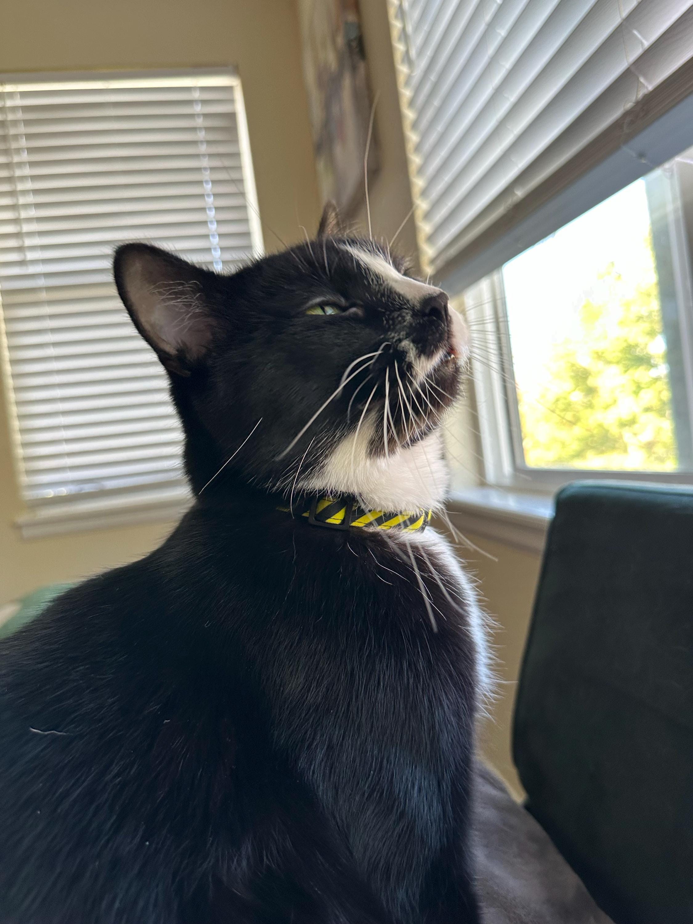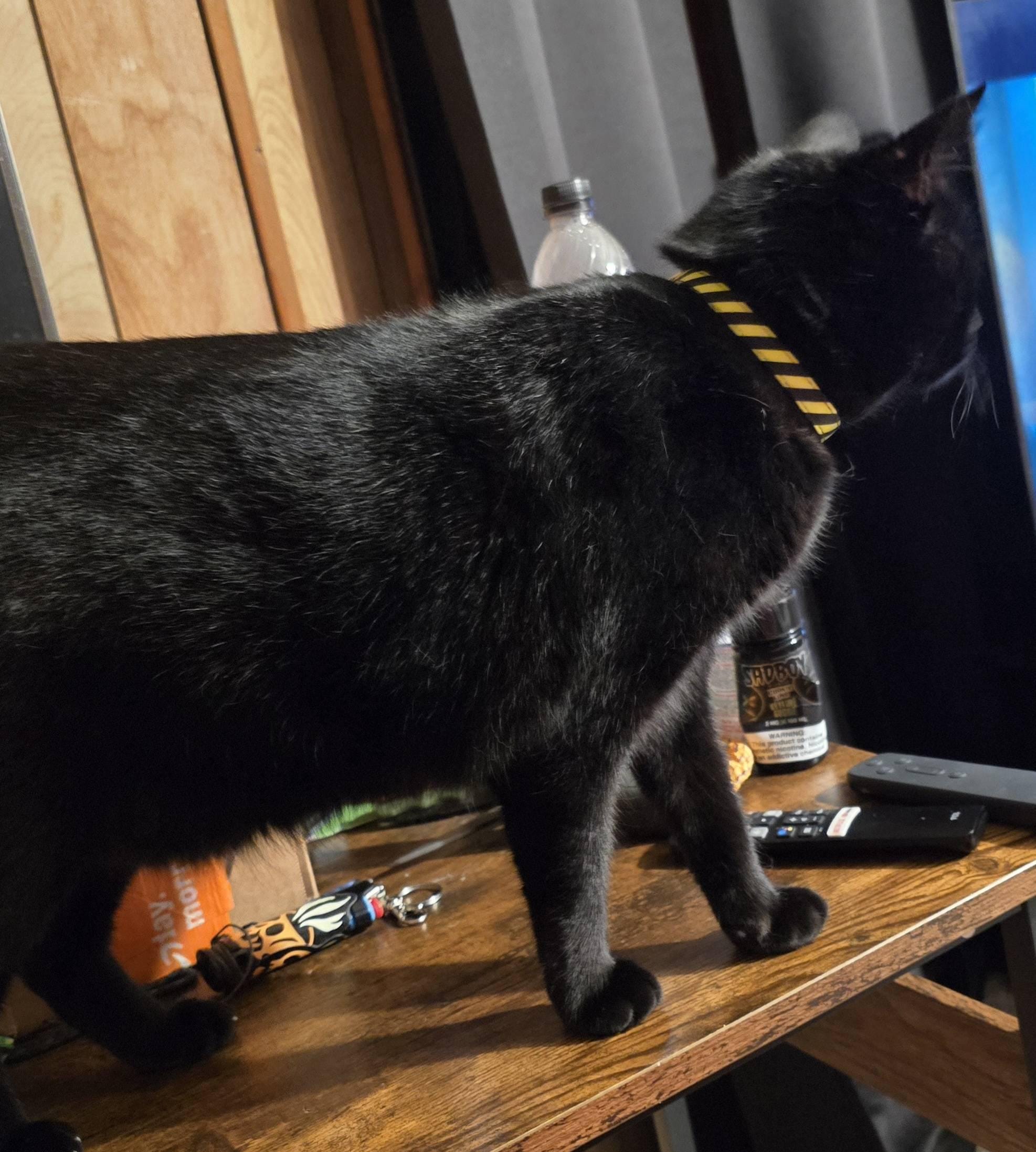 Looks great on my kitty Ripley! I like that the clasp doesn't need to be squeezed for the collar to come off in case it gets snagged.