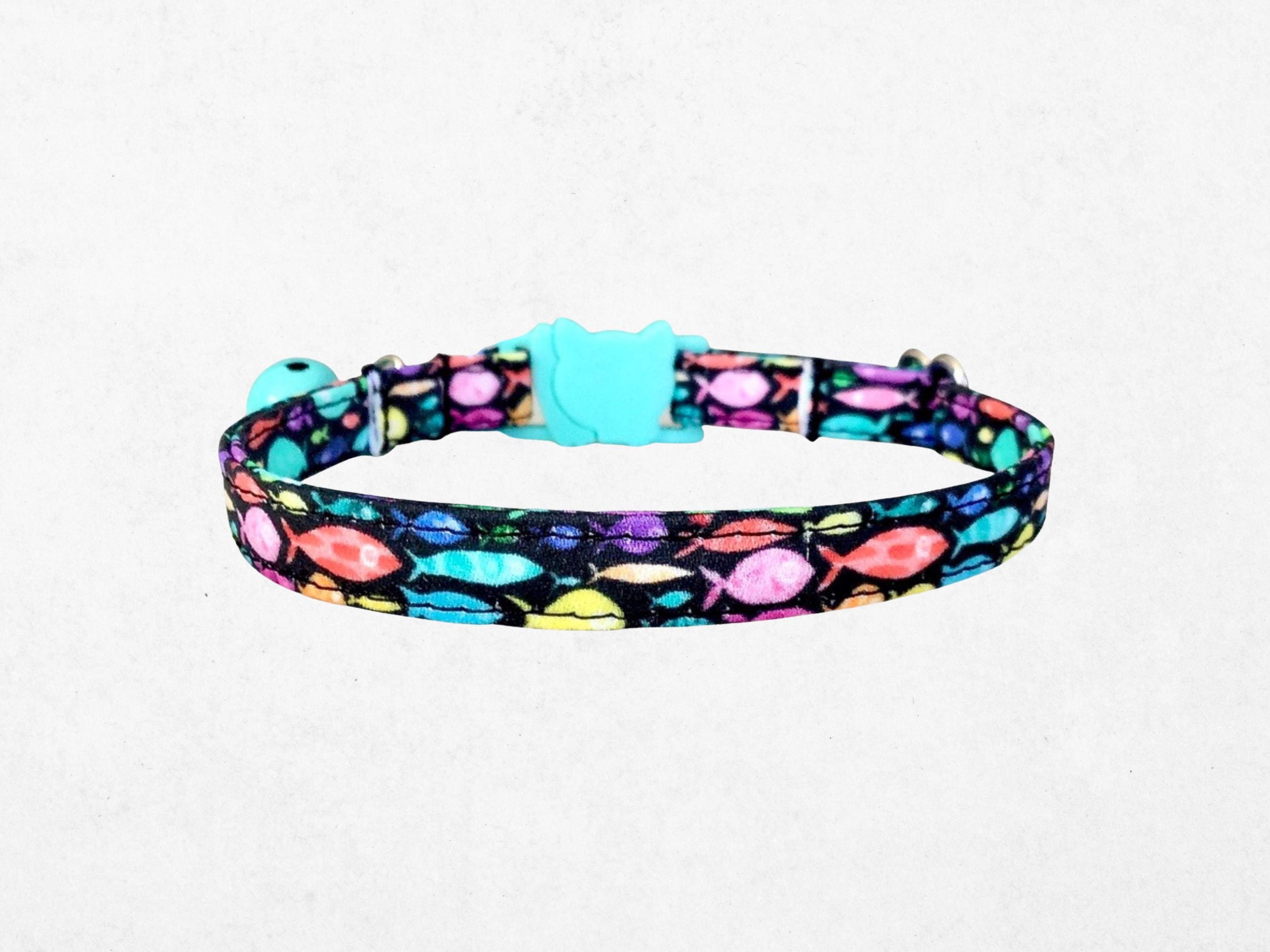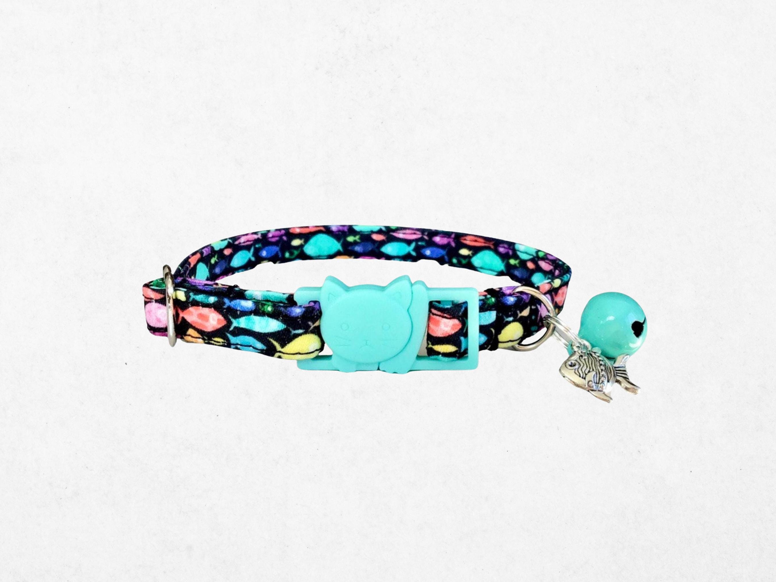 Discover the perfect blend of safety and style with this fish cat collar, designed in a charming teal pattern that captures attention. Whether you choose the breakaway buckle for extra kitty safety or the non-breakaway option, this adjustable collar fits small dogs and kittens comfortably. Handmade with durable materials, itβs an ideal gift for any cat lover seeking both function and flair.