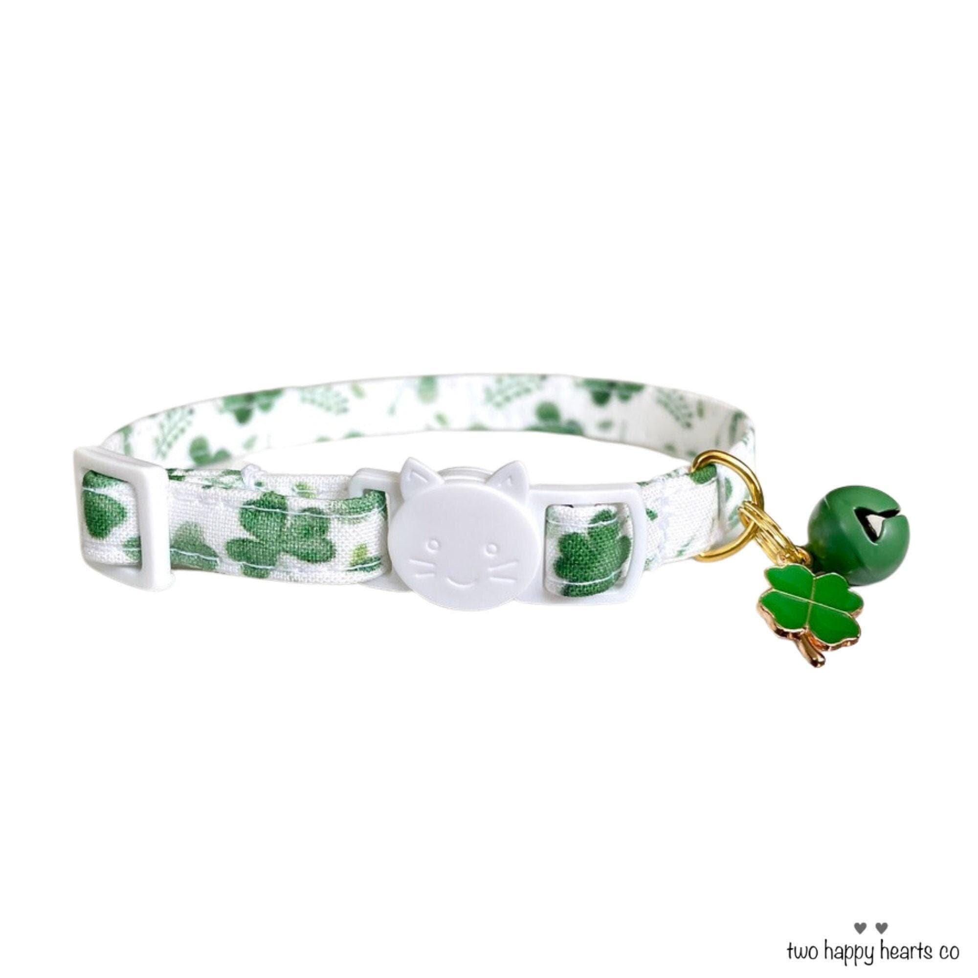 Celebrate your pet's unique charm with this delightful clover cat collar, designed to bring a touch of luck and style to every day. Featuring a lucky four leaf clover print, this handmade cat collar combines comfort and safety with its secure breakaway buckle. Perfect for small dogs and kittens alike, the adjustable fit ensures your furry friend stays cozy and adorable.