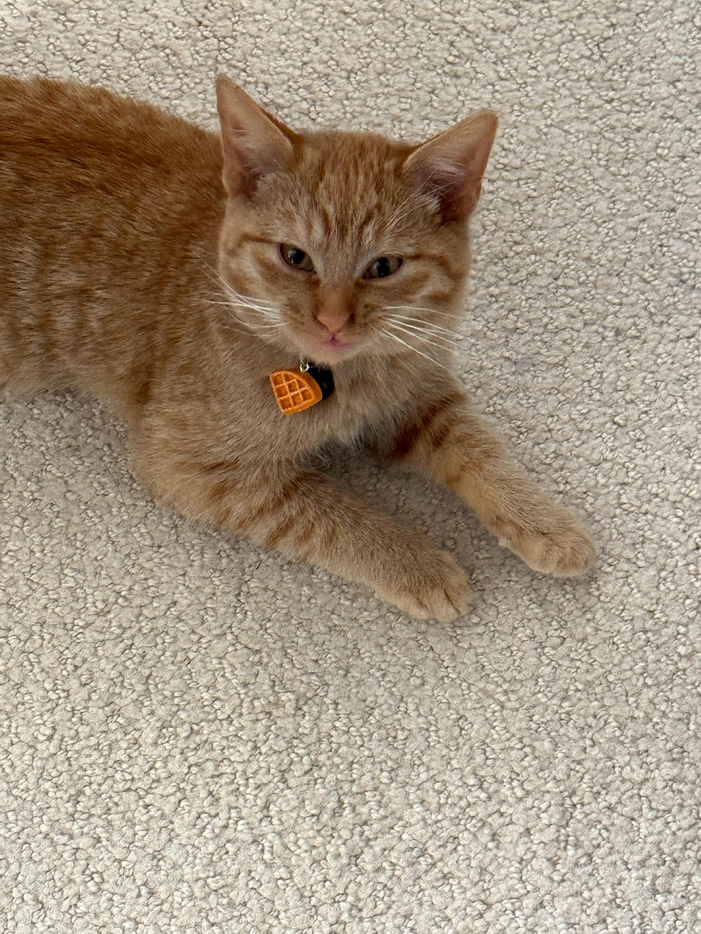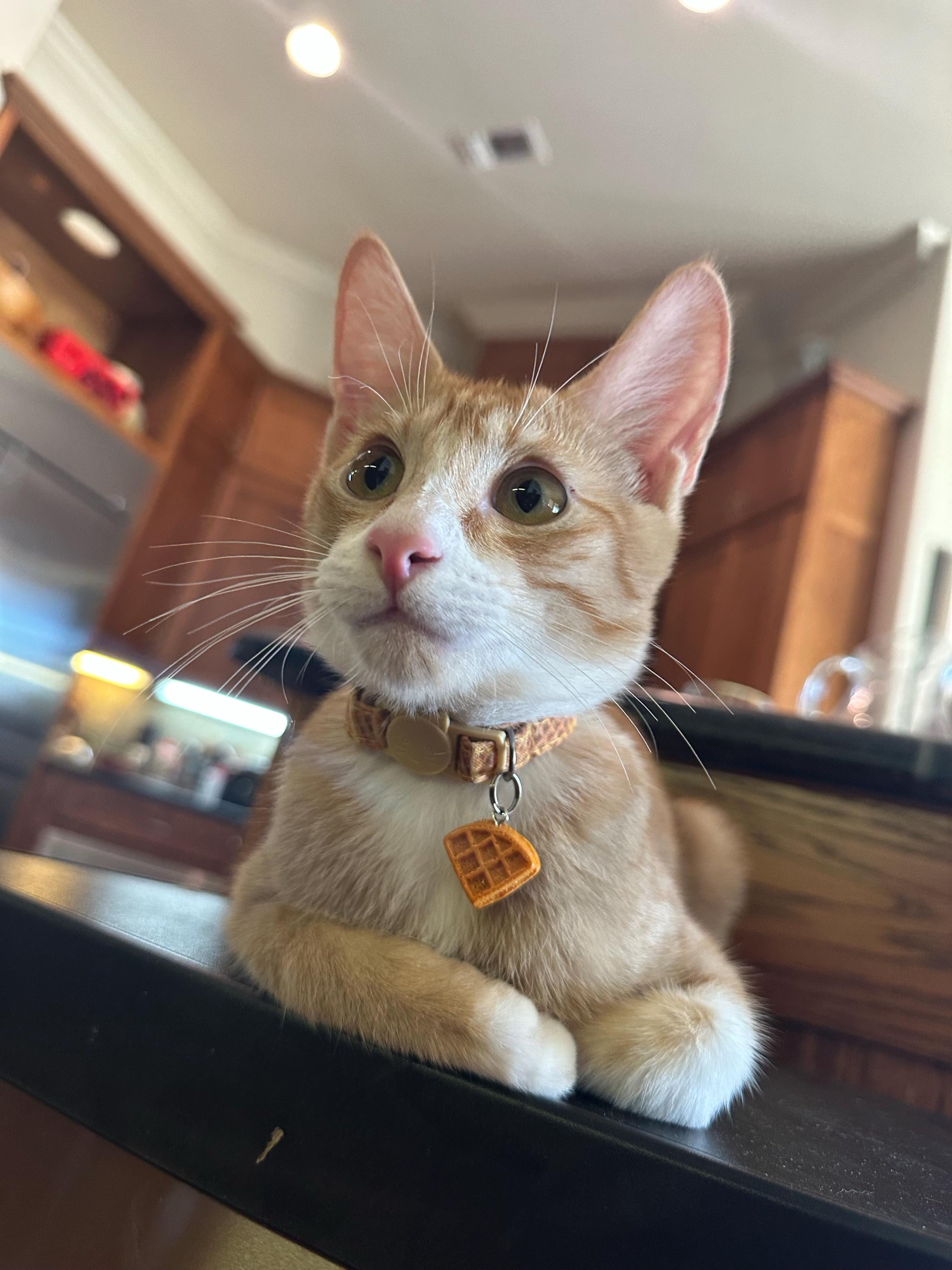 I’ve been looking for a waffle collar for my cat Eggo for a while. While most have the buckle closure this one had the quick release that gives me the peace of mind if he does anything stupid (becuase he is an orange cat) then he doesn’t suffocate in the collar. Plus it’s really cute and I love the waffle charm detail!