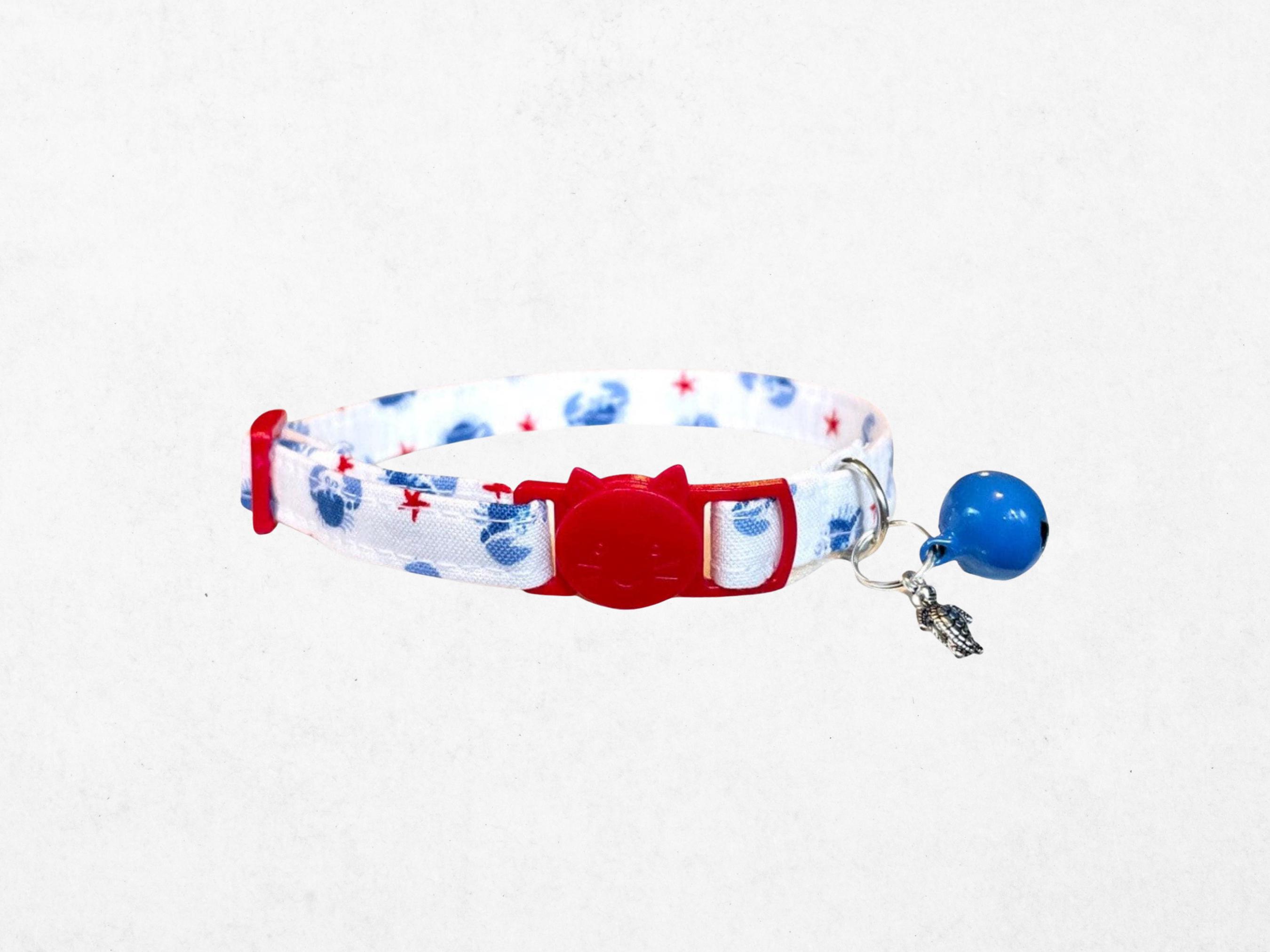Celebrate your pet's playful spirit with this charming breakaway collar, inspired by sunny beach days and featuring a whimsical crab pattern. Designed for comfort and safety, this summer pet accessory offers an adjustable fit perfect for cats and small dogs alike. Whether your furry friend is lounging by the window or exploring the backyard, this collar blends style and security effortlessly.