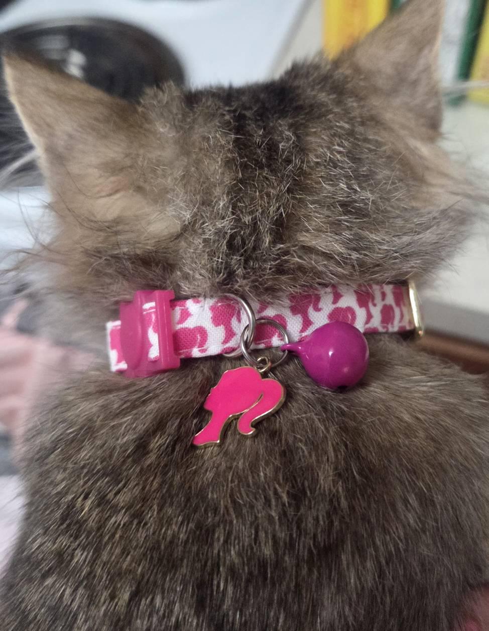 Love this! My kitty, Dolly, keeps taking her collar off so we had to order a new one. Of course once it arrived we finally found the old one. Itβs so cute & well made. Cheers!