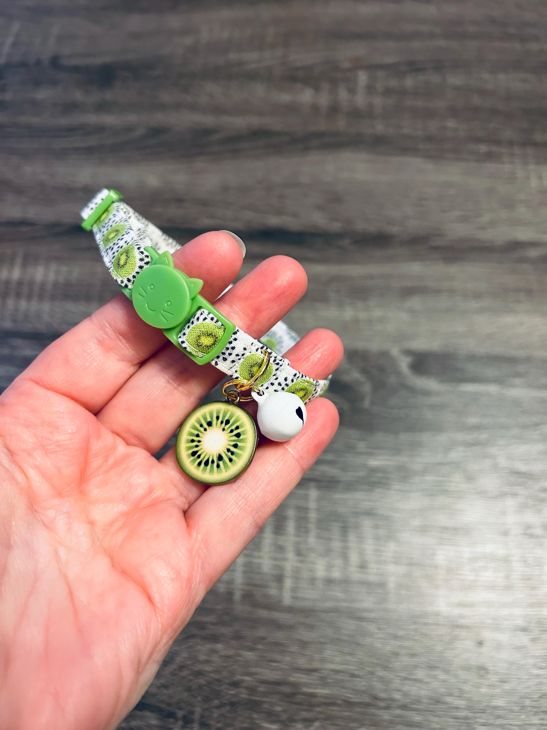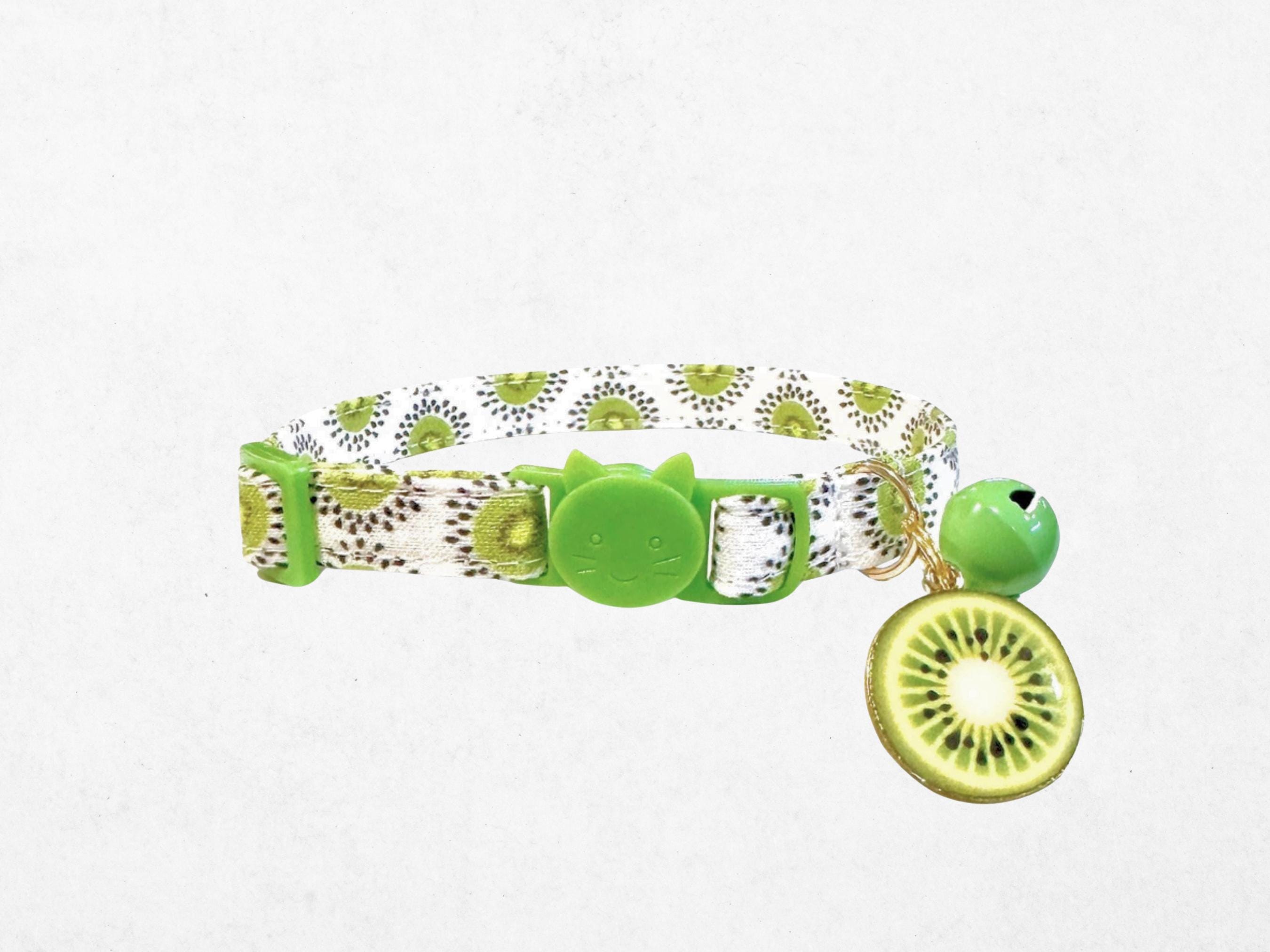 Celebrate your pet's vibrant personality with this handmade breakaway cat collar featuring a lively kiwi citrus collar pattern. Designed with safety in mind, the secure breakaway buckle collar ensures your furry friend can explore freely while staying protected. This colorful pet collar combines tropical print charm with a medium firm fabric that offers both comfort and durability.