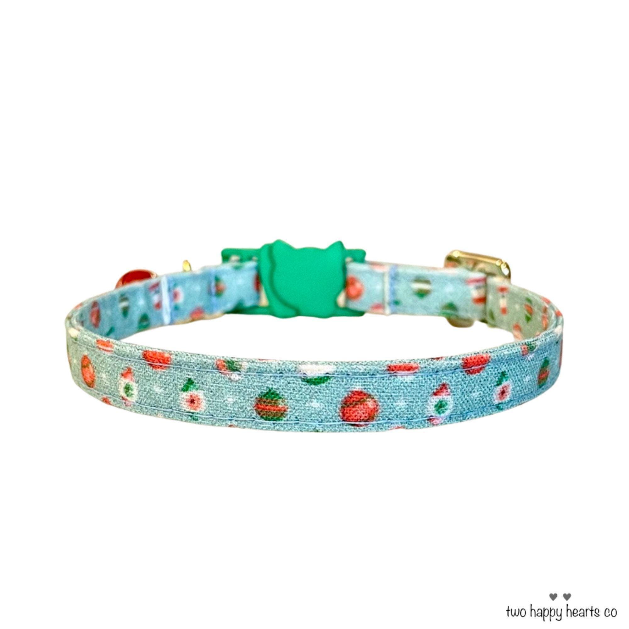 Celebrate your furry friend's festive spirit with this charming holiday pet collar, designed to bring joy and comfort to cats and small dogs alike. Featuring a secure breakaway buckle, this adjustable collar ensures safety without compromising style. With delightful bells and charms, it adds a touch of holiday magic perfect for any pet holiday outfit.