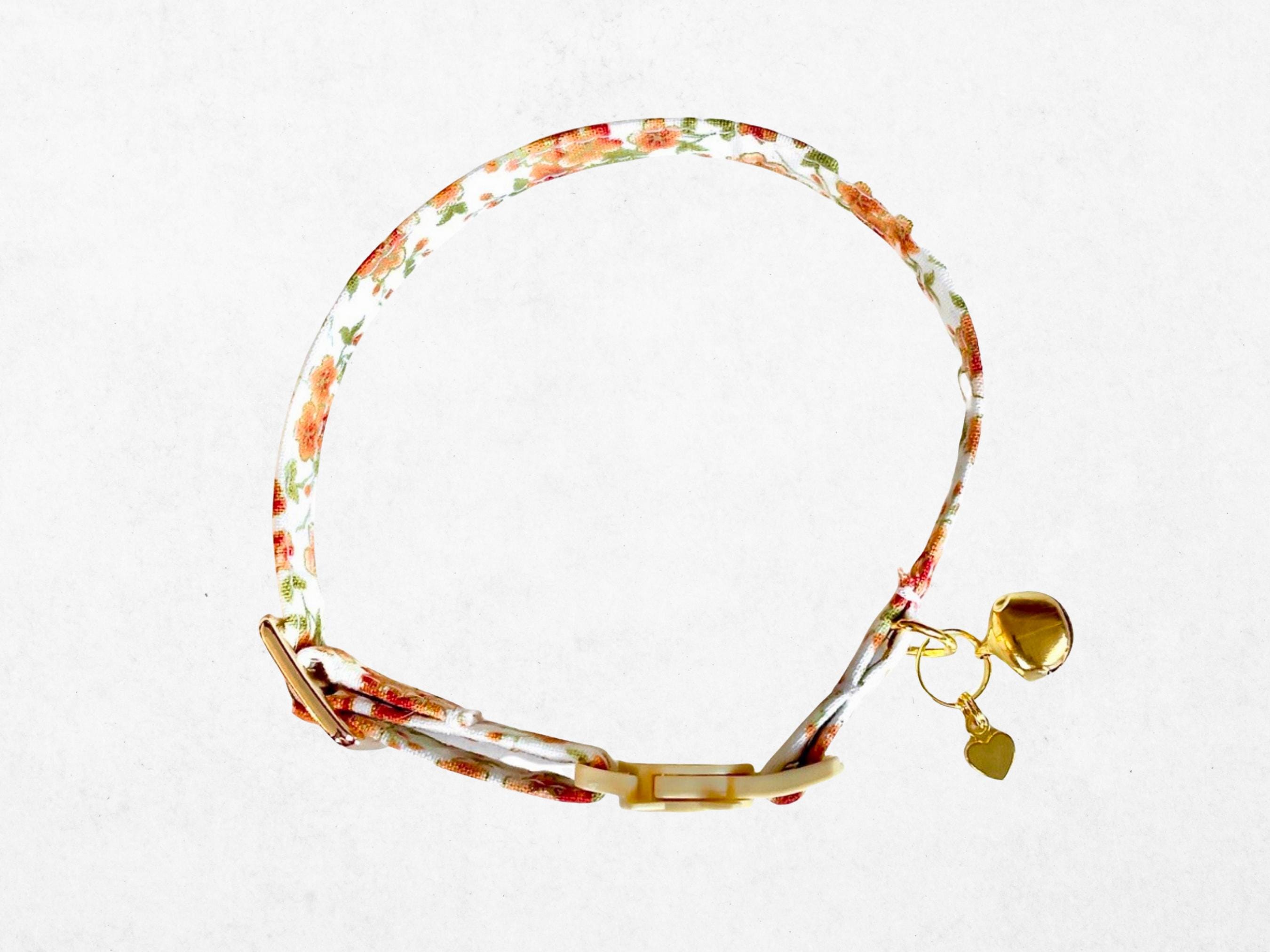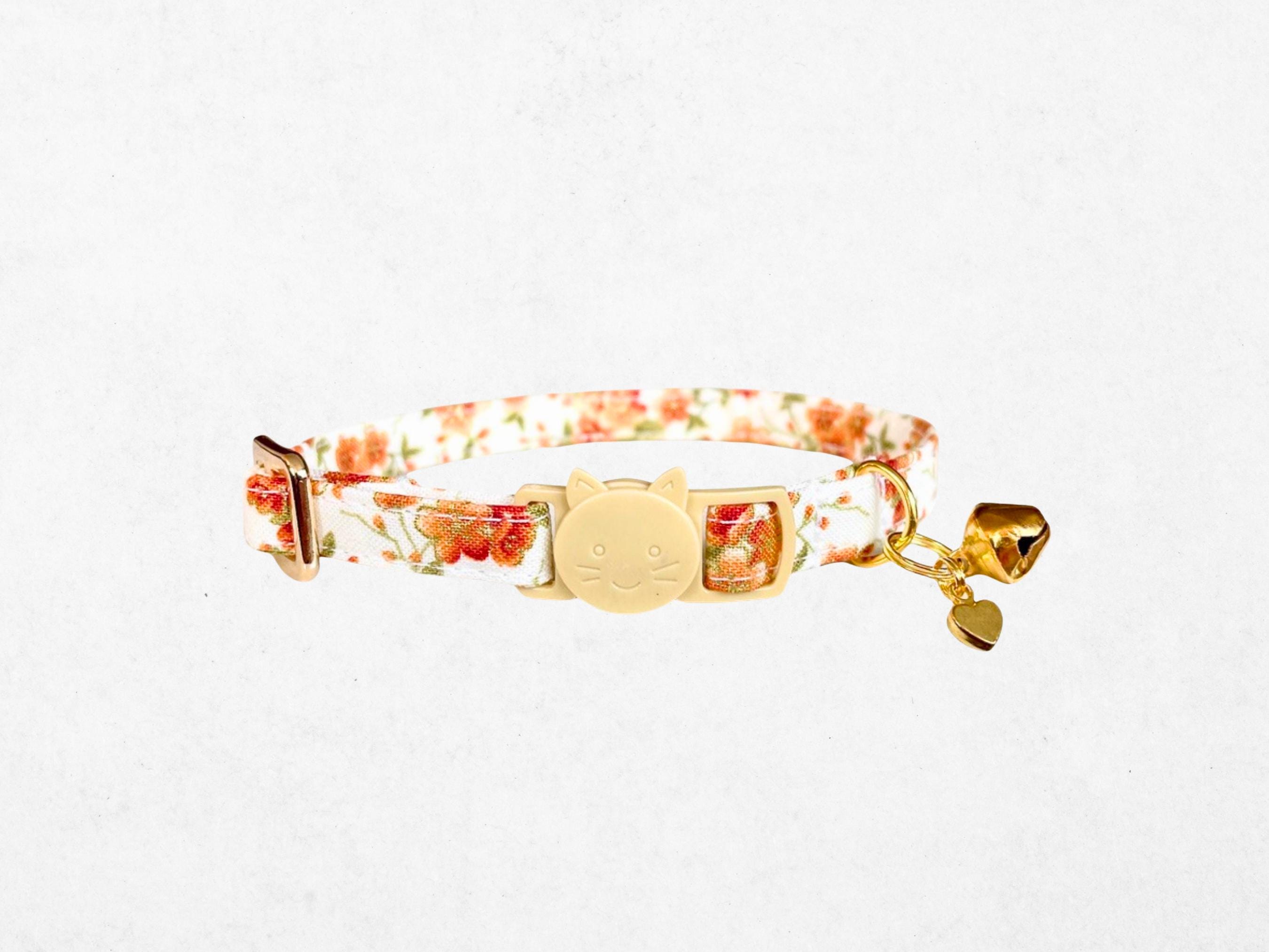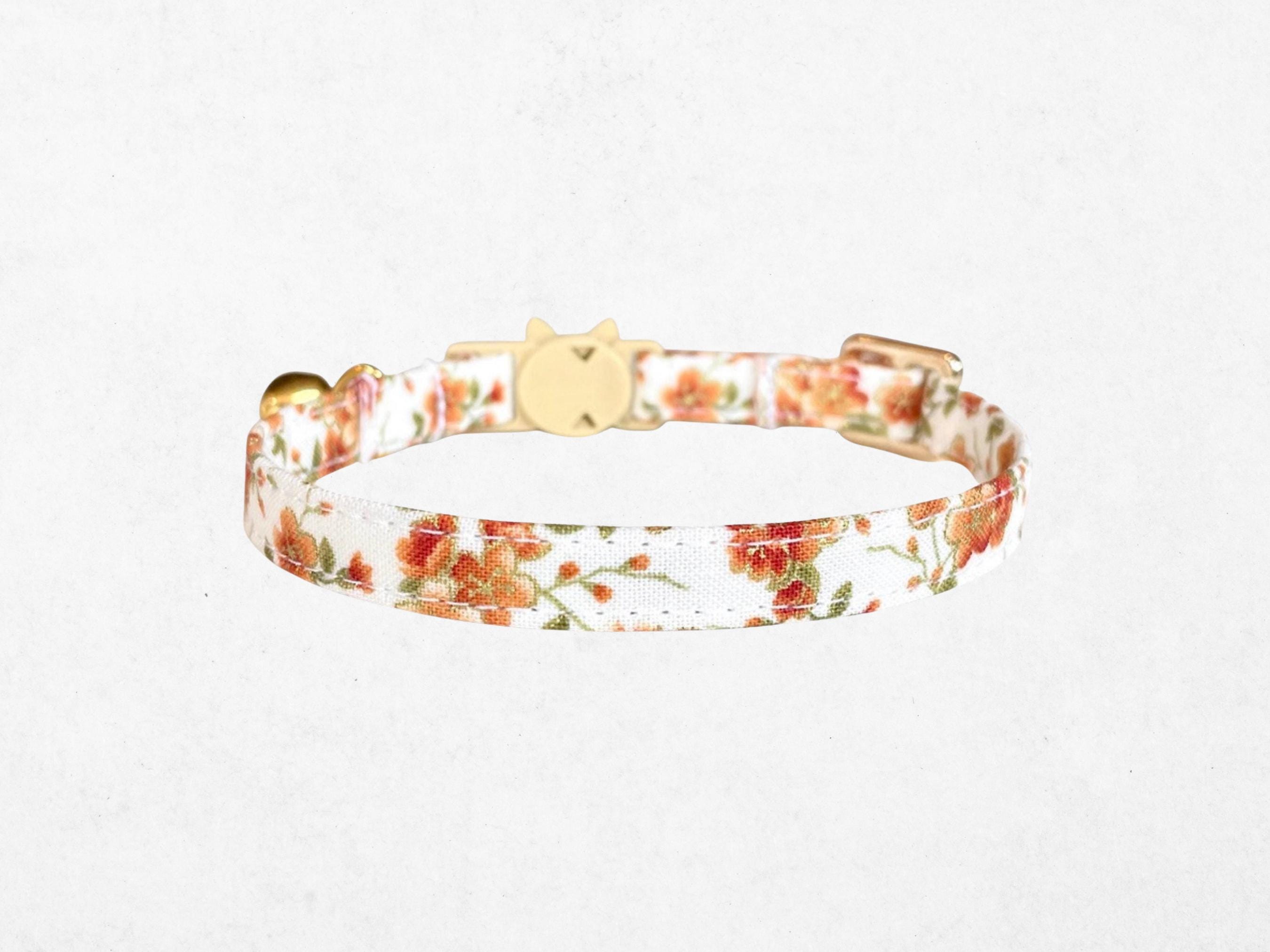 As autumn leaves begin to fall, celebrate your pet's charm with this exquisite gold floral cat collar, thoughtfully designed for fall kittens and small dogs. Crafted with care, it features an adjustable breakaway buckle that ensures safety without compromising style, perfect for tiny dogs or curious cats. Accented with rustic heart bells and delicate charms, this handmade pet collar blends seasonal beauty with practical comfort.