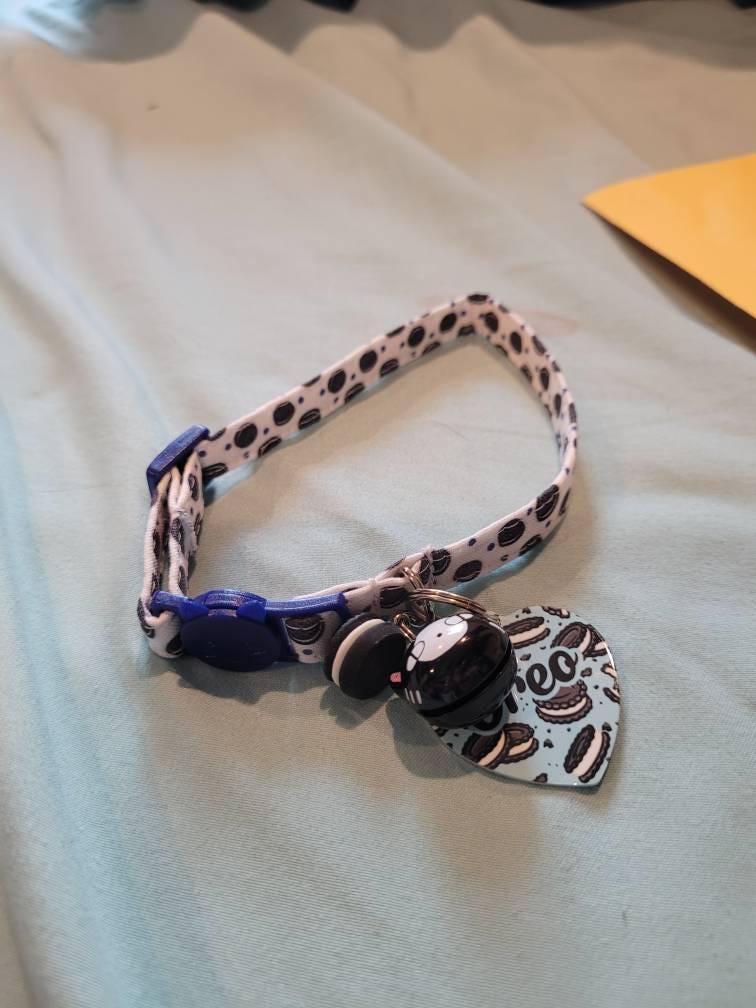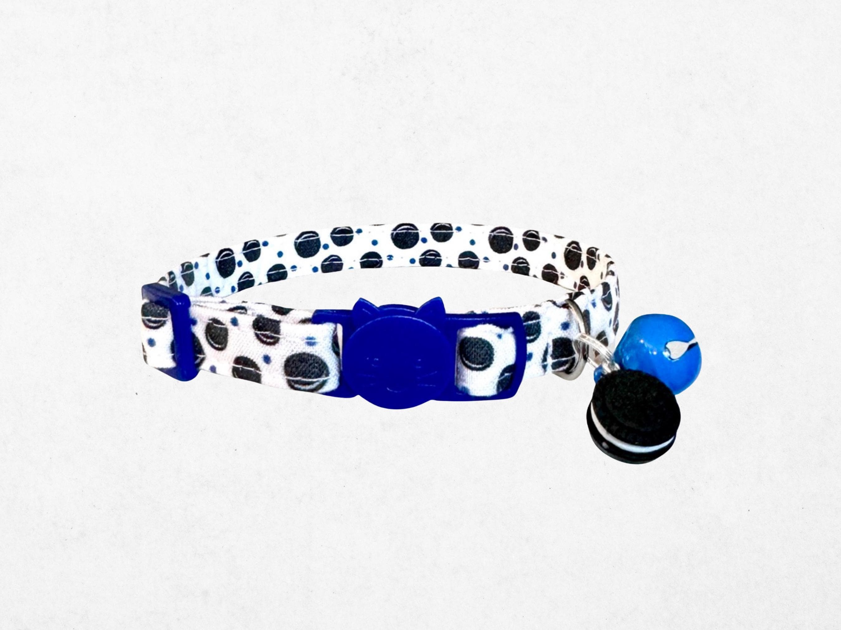 Discover the perfect blend of playful style and safety with our handmade cat collar featuring a charming Oreo cookie print. Designed with an adjustable breakaway buckle, this collar ensures your small cat stays comfortable and secure during every adventure. Whether you're searching for a unique gift for a cookie lover or a functional accessory with a bell charm, this collar beautifully combines fun design with practical features.