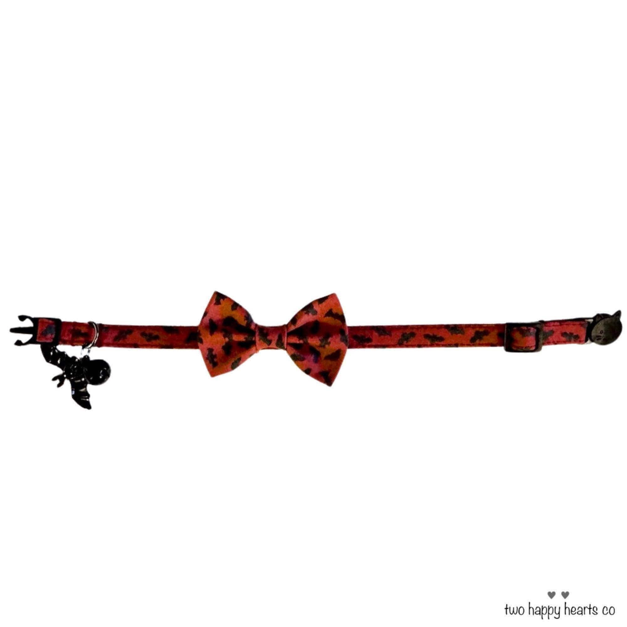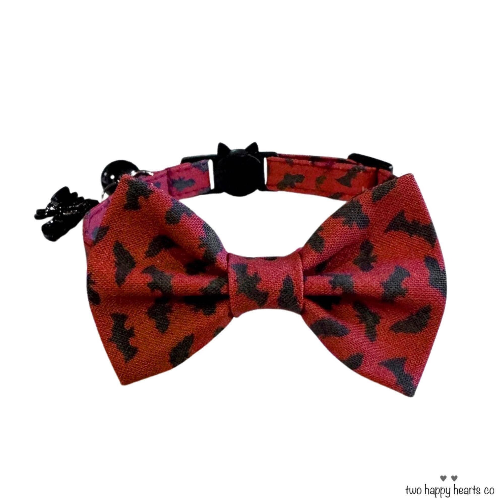 Celebrate your pet's unique style with this handmade bat cat collar, designed to blend gothic charm and practical safety. Featuring a secure breakaway buckle and a playful bow, this Halloween bat collar offers both comfort and spooky flair for cats and small dogs alike. Crafted with a medium firm feel and a sturdy D-ring attachment, it's the perfect accessory for your furry friend during the festive season and beyond.
