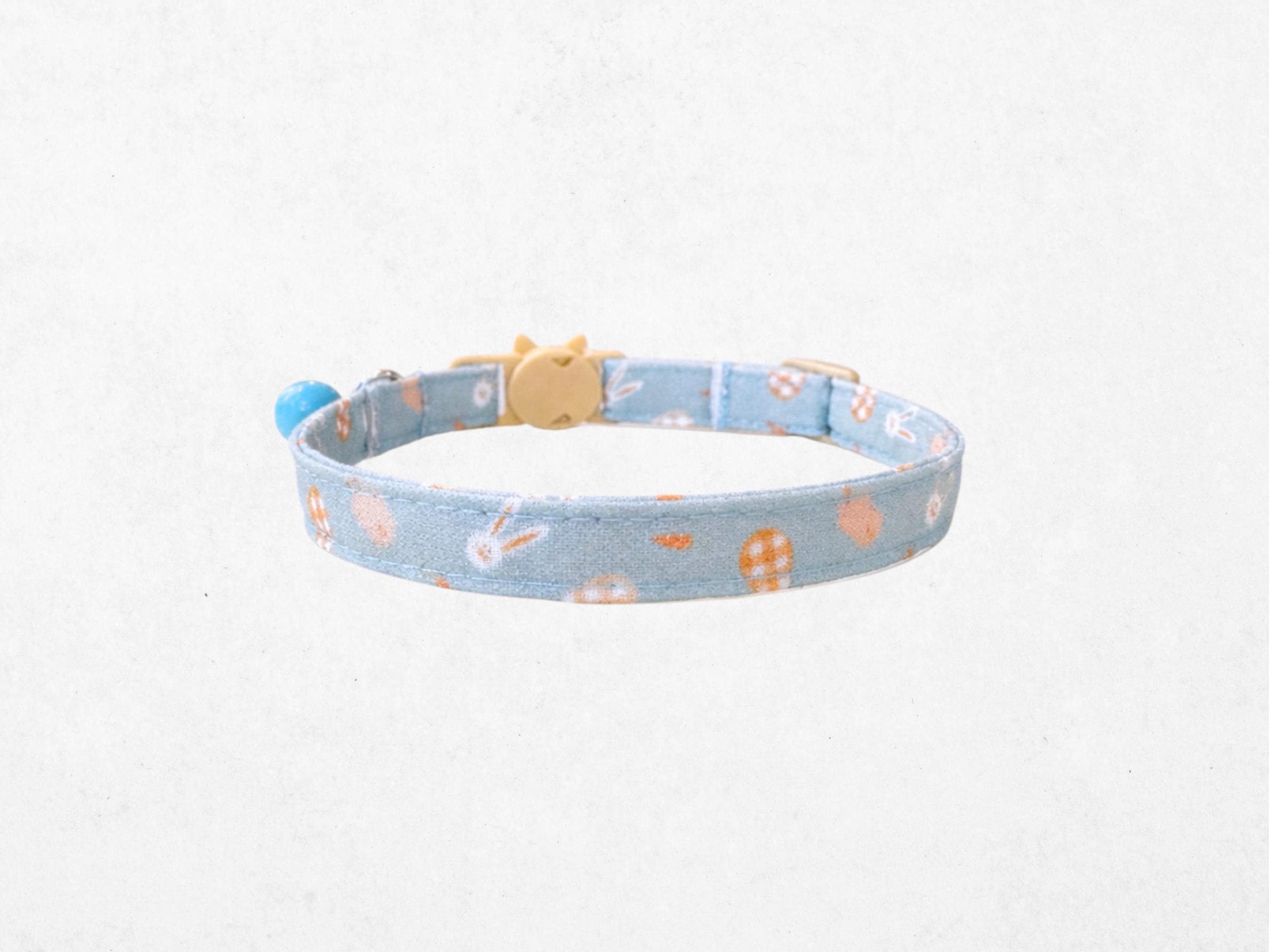 Celebrate the arrival of spring with a charming bunny cat collar that blends festive cheer and safety for your furry friend. This handmade accessory features a delightful blue bunny egg print, making it a perfect spring pet accessory to brighten your boy cat's wardrobe. Crafted with a secure breakaway buckle, it ensures comfort and protection while adding a touch of seasonal whimsy.